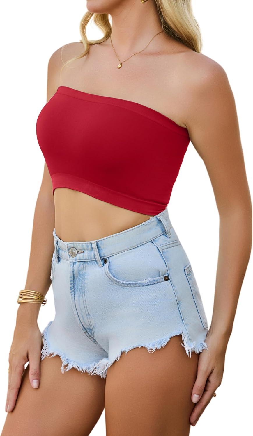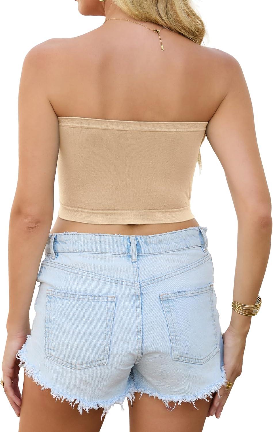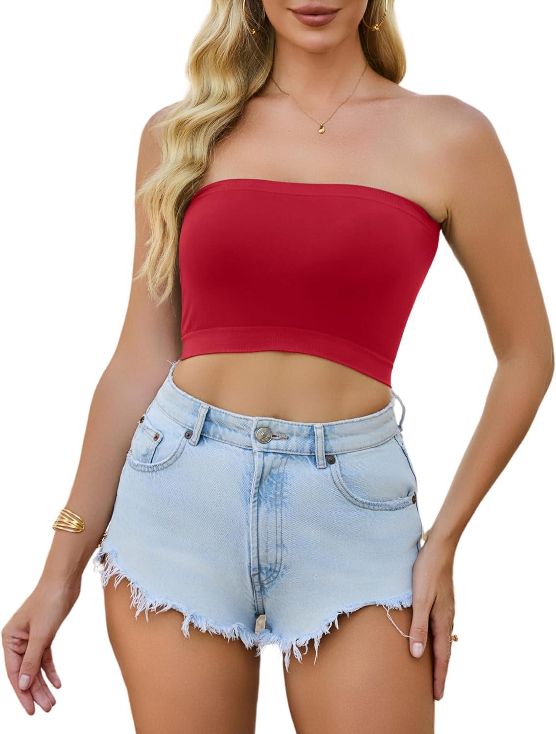 4 Pieces Tube Top Strapless Tops for Women Summer Bandeau Basic Crop Tops Sleeveless Shirt(Black white beige red)