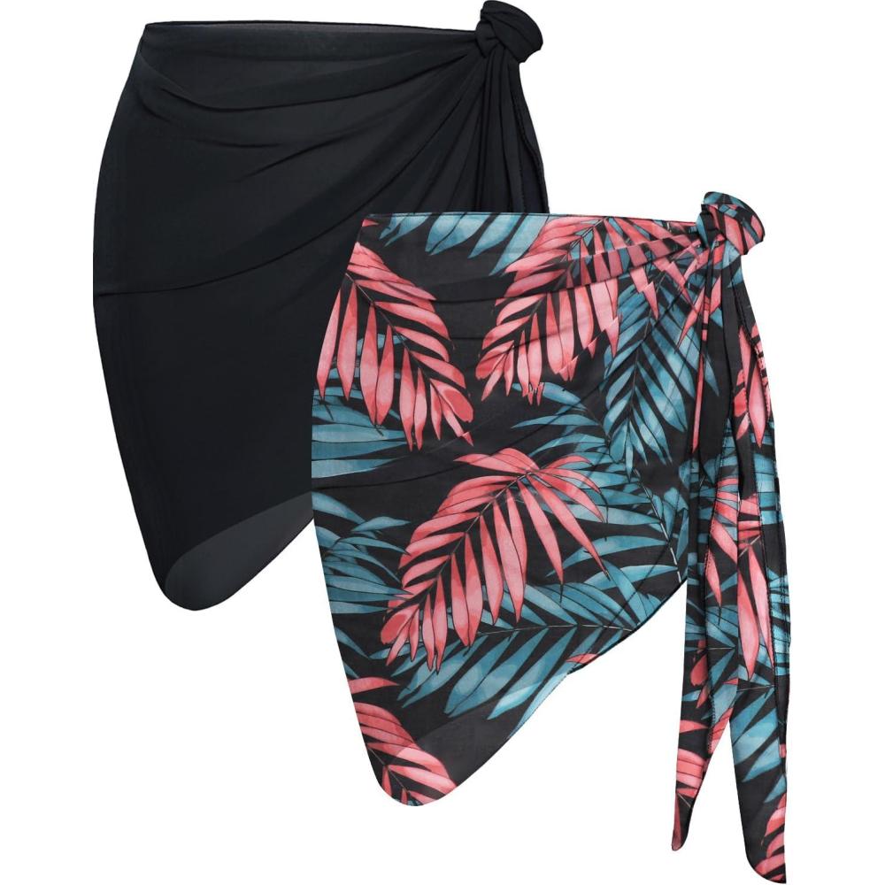 CHICGAL 2 Pieces Women Beach Sarong Bathing Suit Wrap Skirt Sheer Bikini Swimsuit Cover Ups for Swimwear(Black and Pink Green)