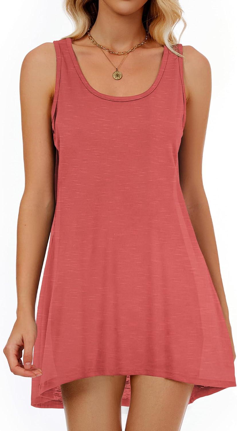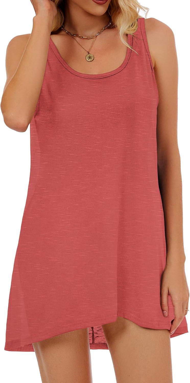 CHICGAL Beach Cover Ups for Women Summer Casual Sleeveless Tank Dresses Swimsuit Coverup(A Coral Pink)