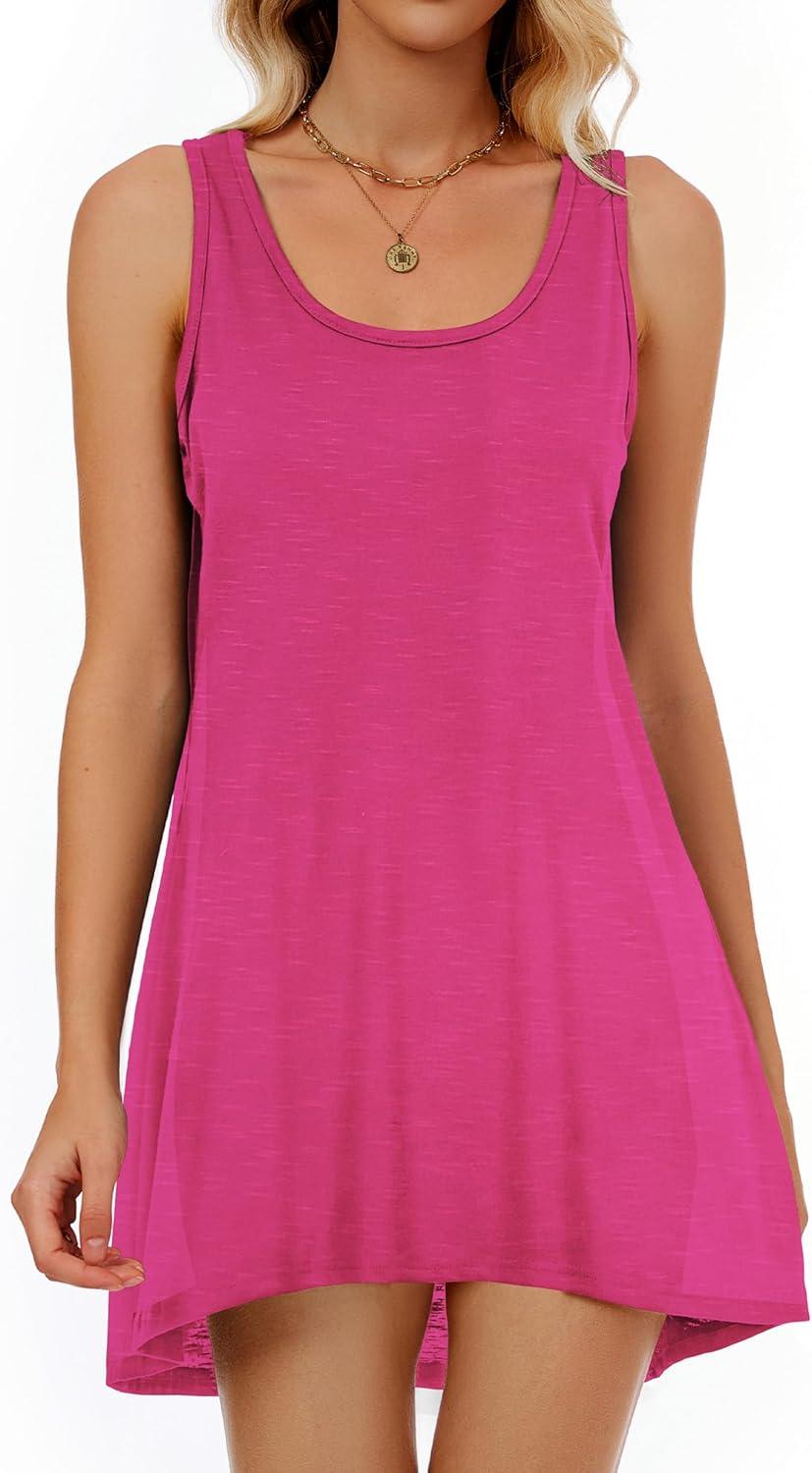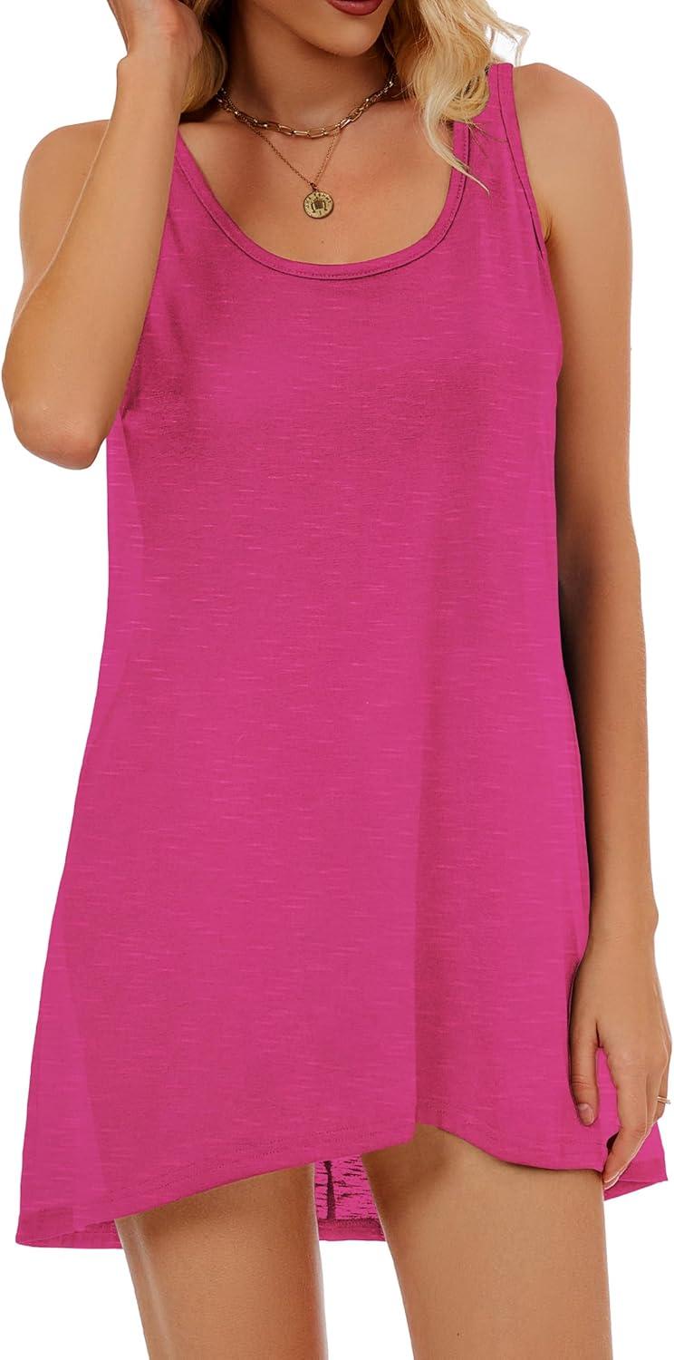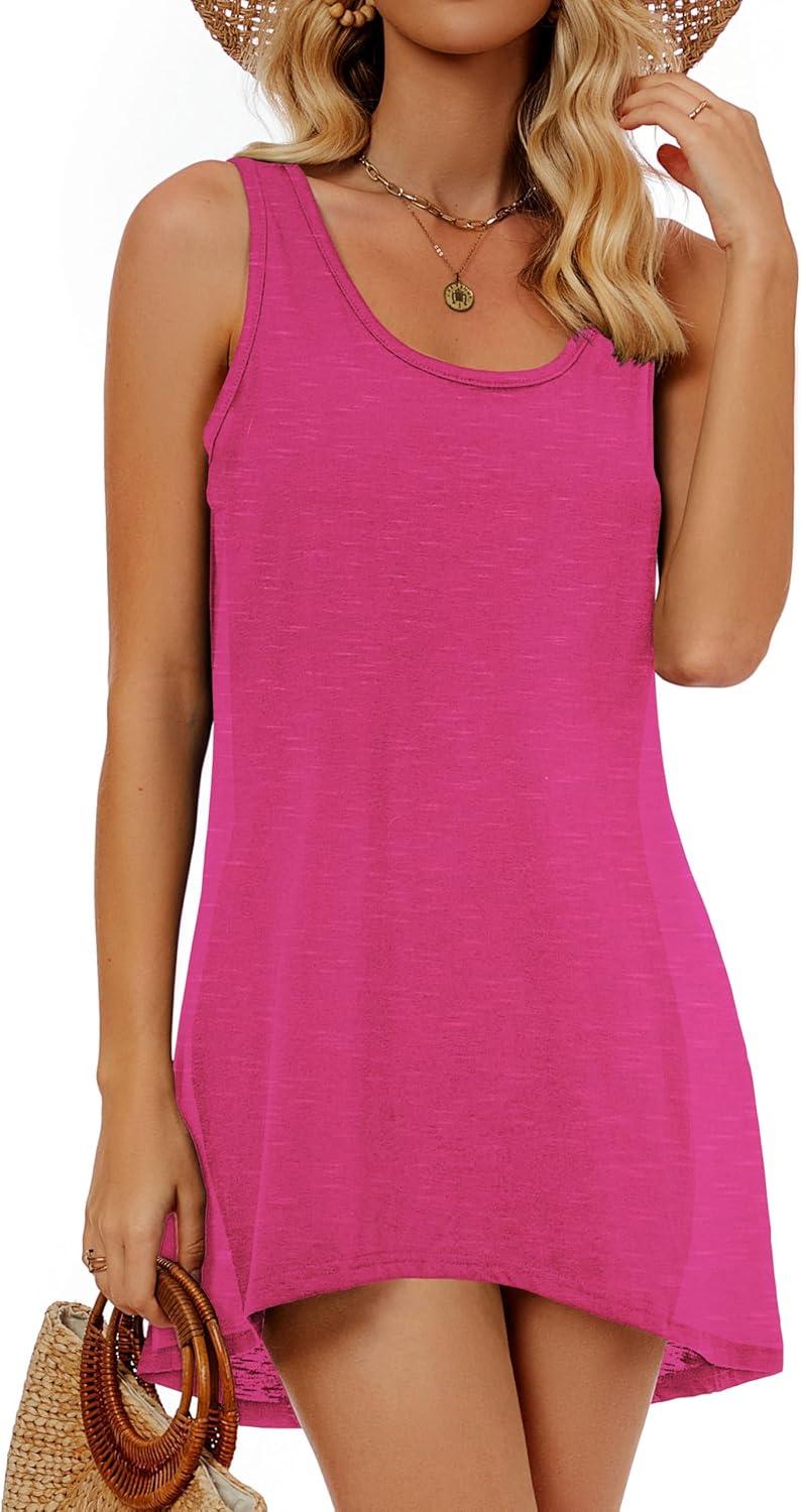 CHICGAL Beach Cover Ups for Women Summer Casual Sleeveless Tank Dresses Swimsuit Coverup(Rose Red)