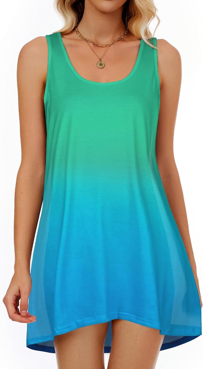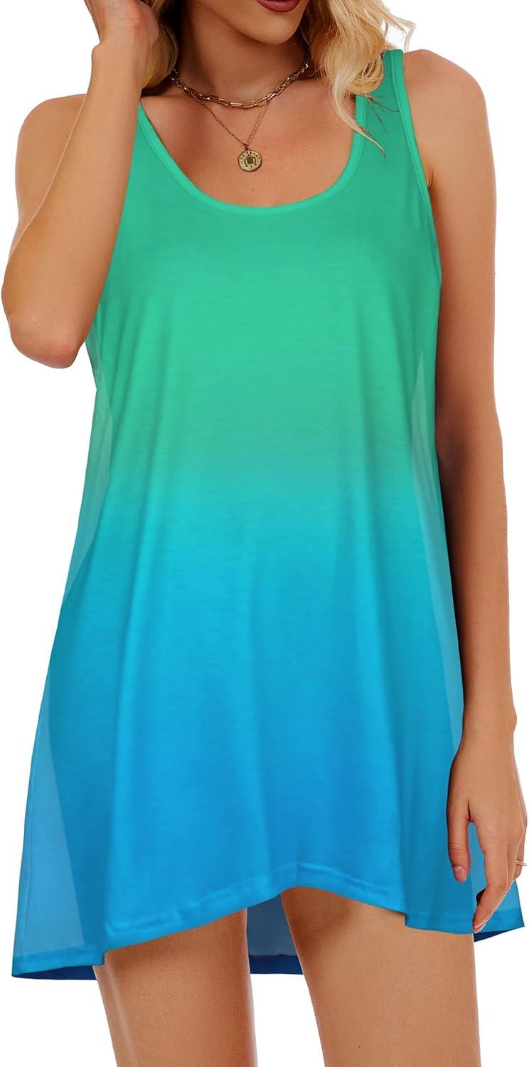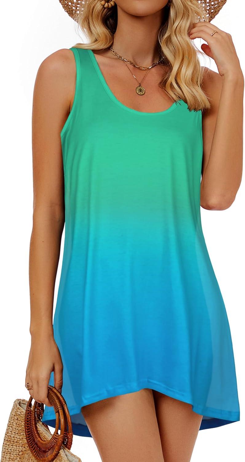 CHICGAL Beach Cover Ups for Women Summer Casual Sleeveless Tank Dresses Swimsuit Coverup(Gradient Multicolored)