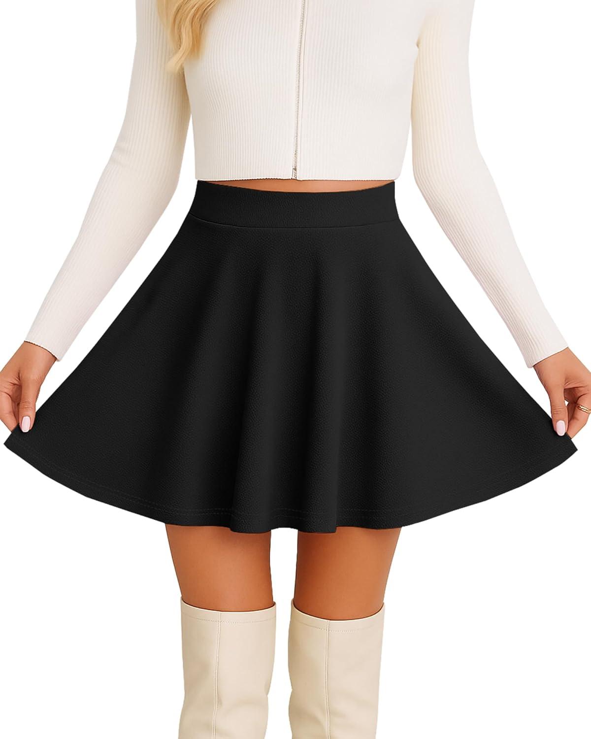 CHICGAL Mini Skirts for Women Casual Flowy Pleated Skater Skirt Summer Basic High Waisted Short Skirt(Black)
