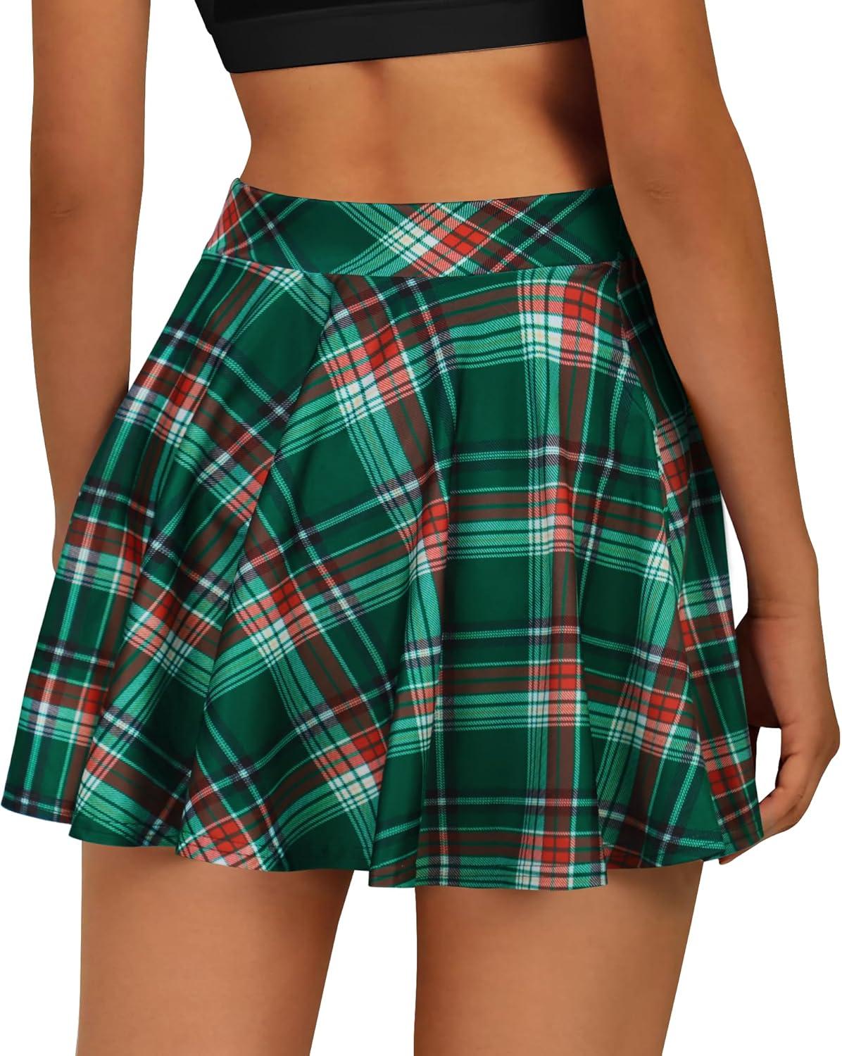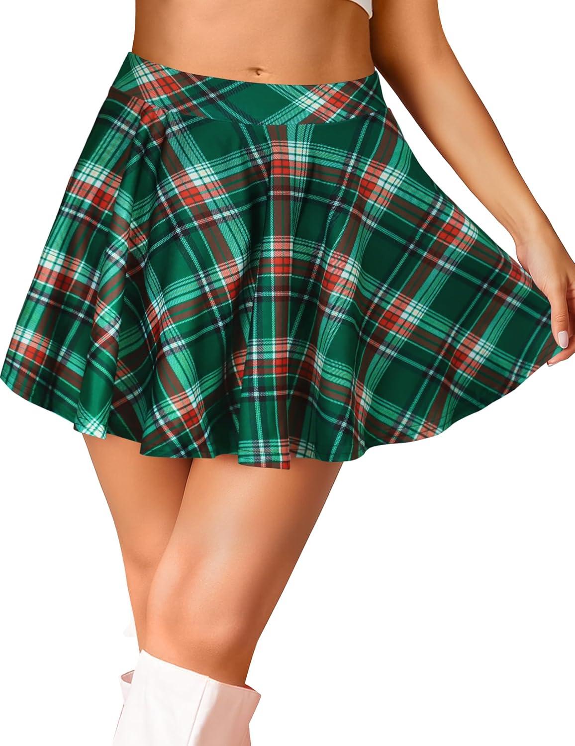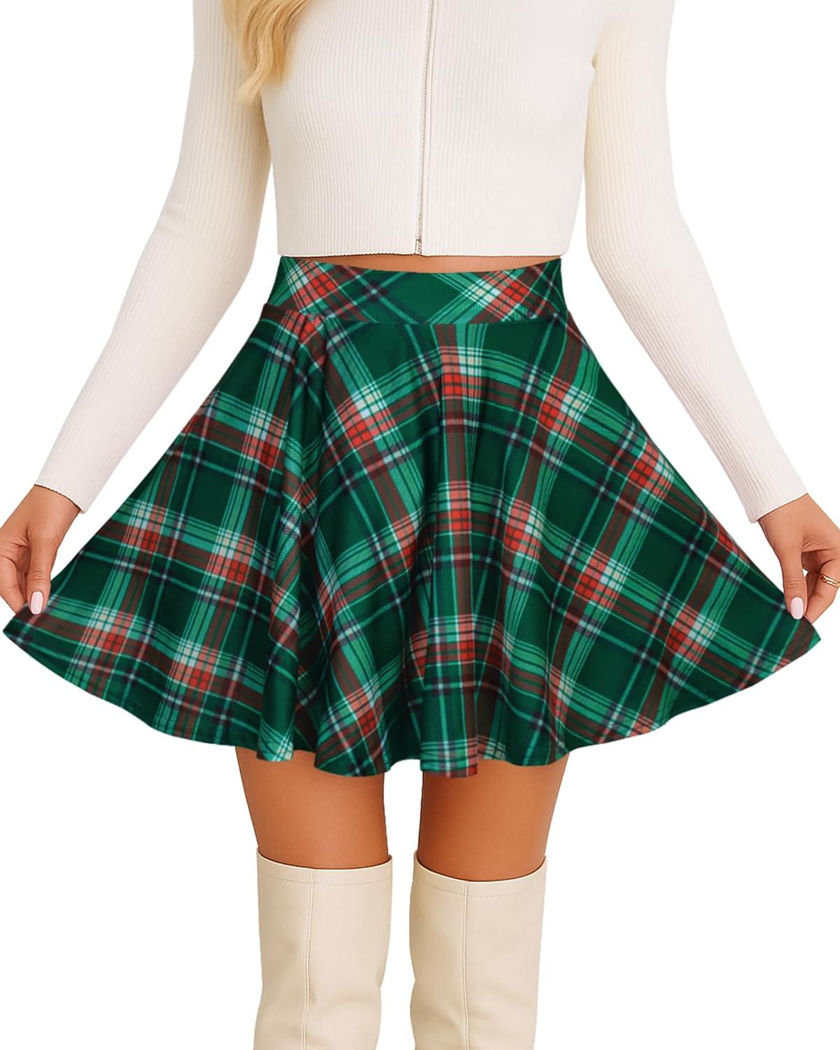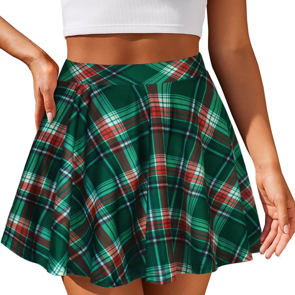 CHICGAL Mini Skirts for Women Casual Flowy Pleated Skater Skirt Summer Basic High Waisted Short Skirt(C Green Red Plaid)