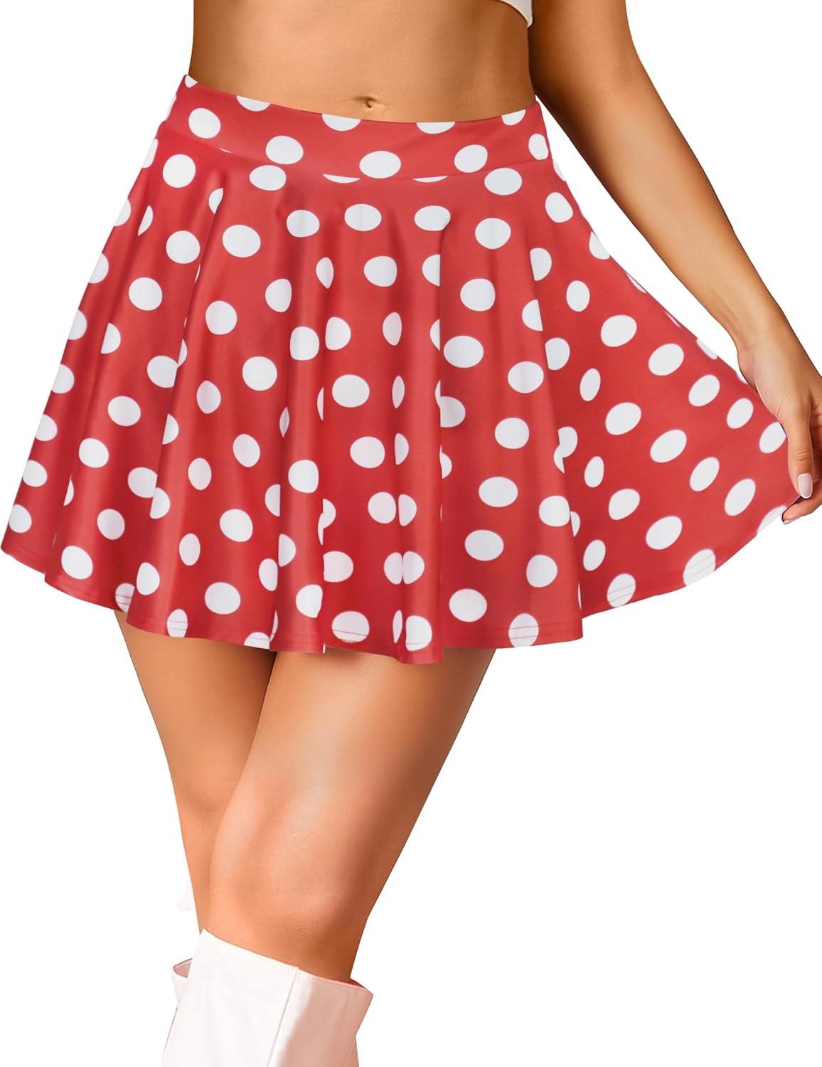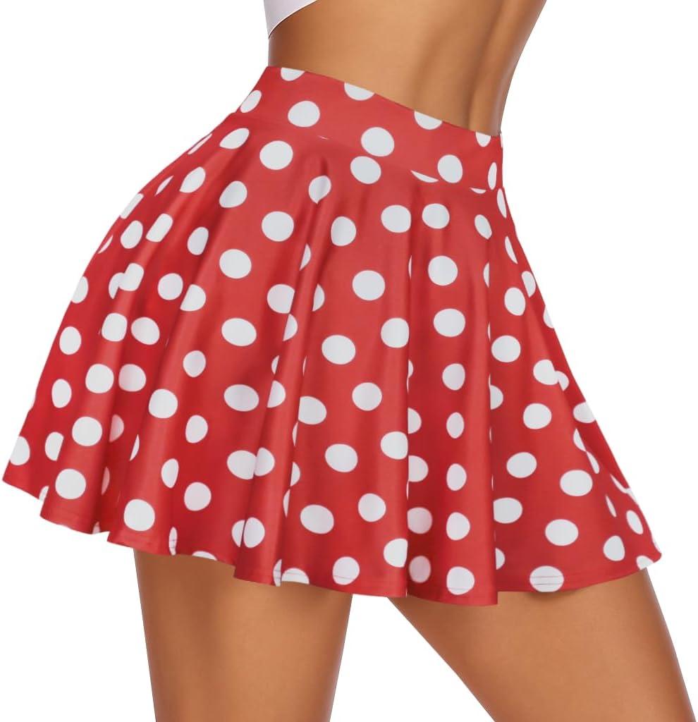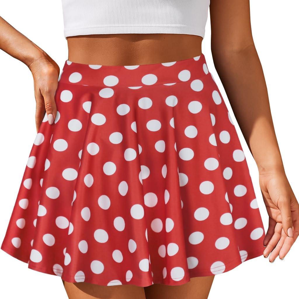 CHICGAL Mini Skirts for Women Casual Flowy Pleated Skater Skirt Summer Basic High Waisted Short Skirt(C Red Polka Dot)