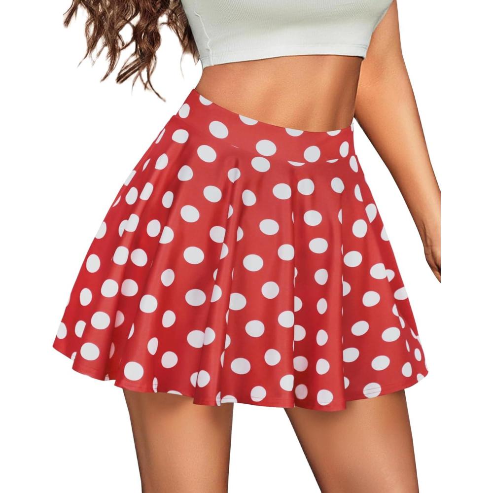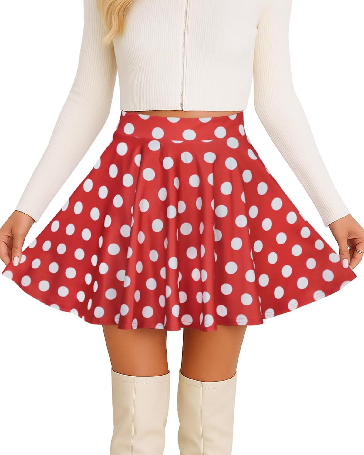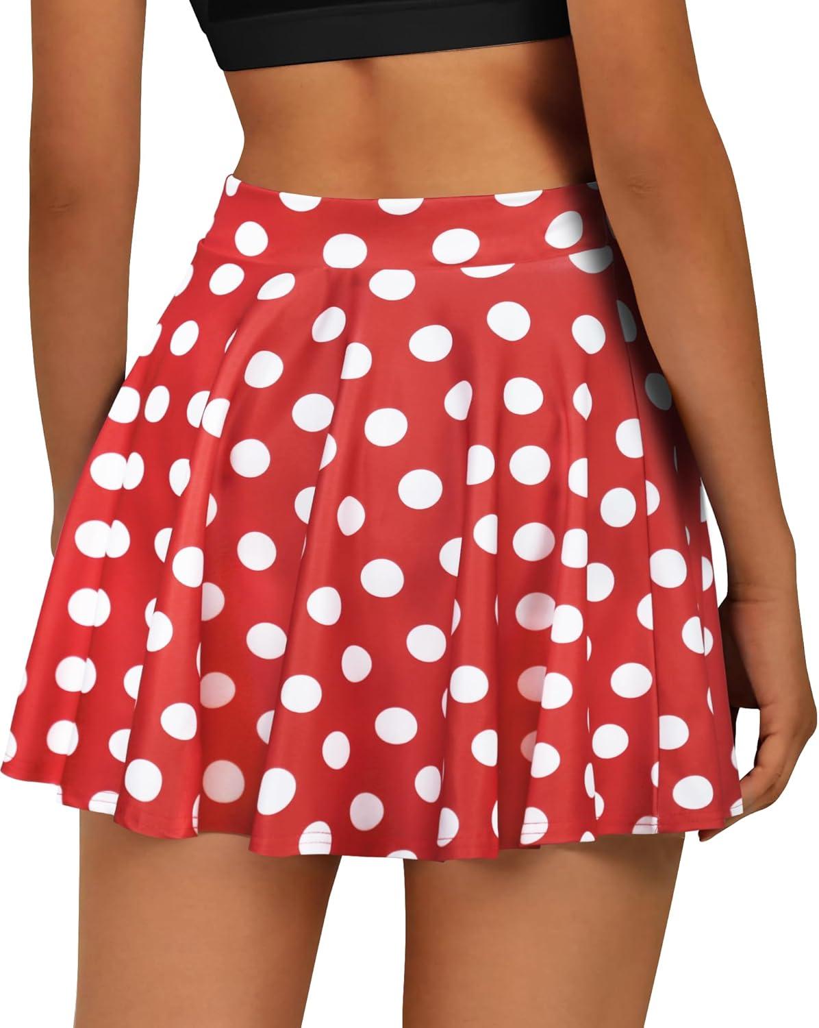 CHICGAL Mini Skirts for Women Casual Flowy Pleated Skater Skirt Summer Basic High Waisted Short Skirt(C Red Polka Dot)