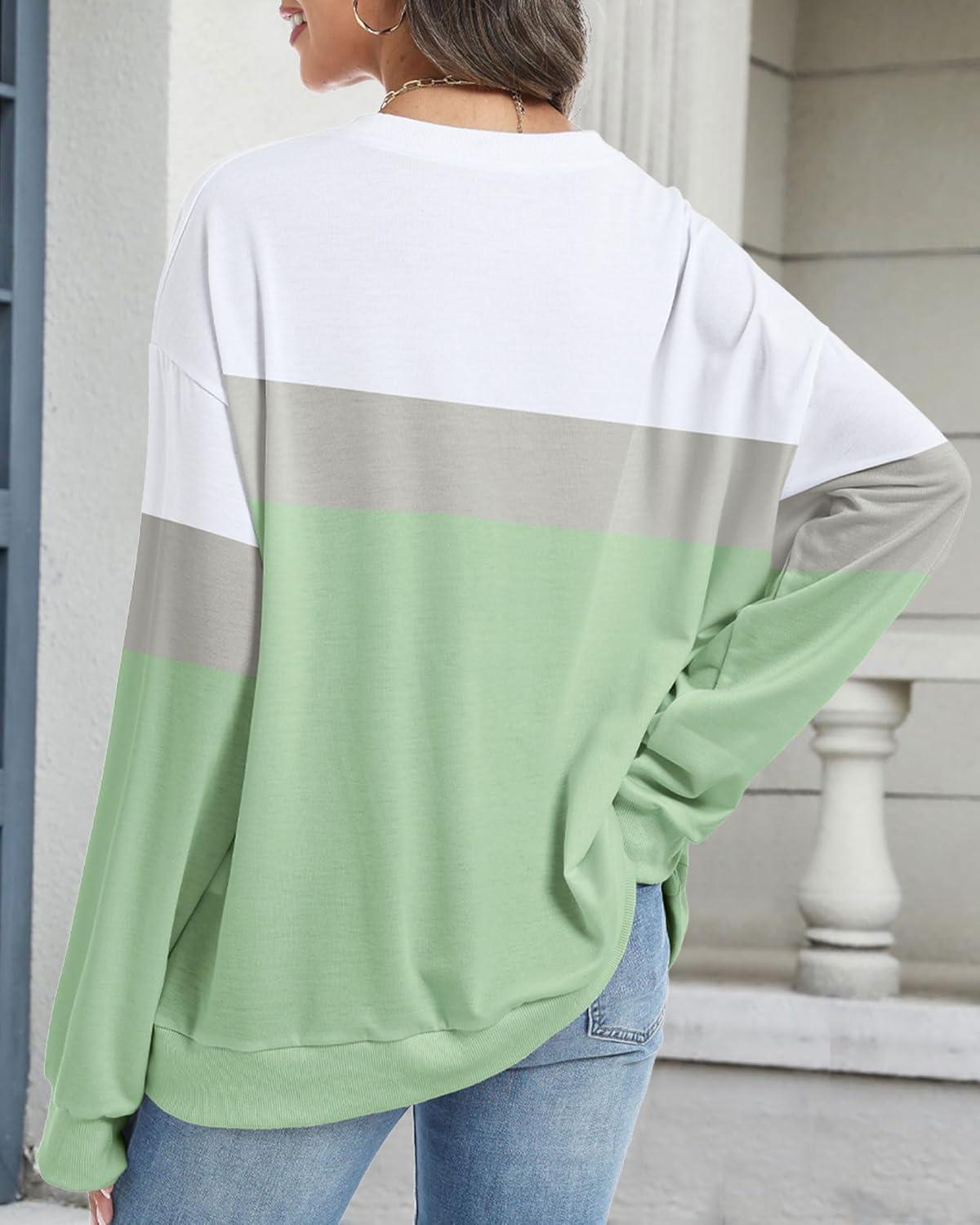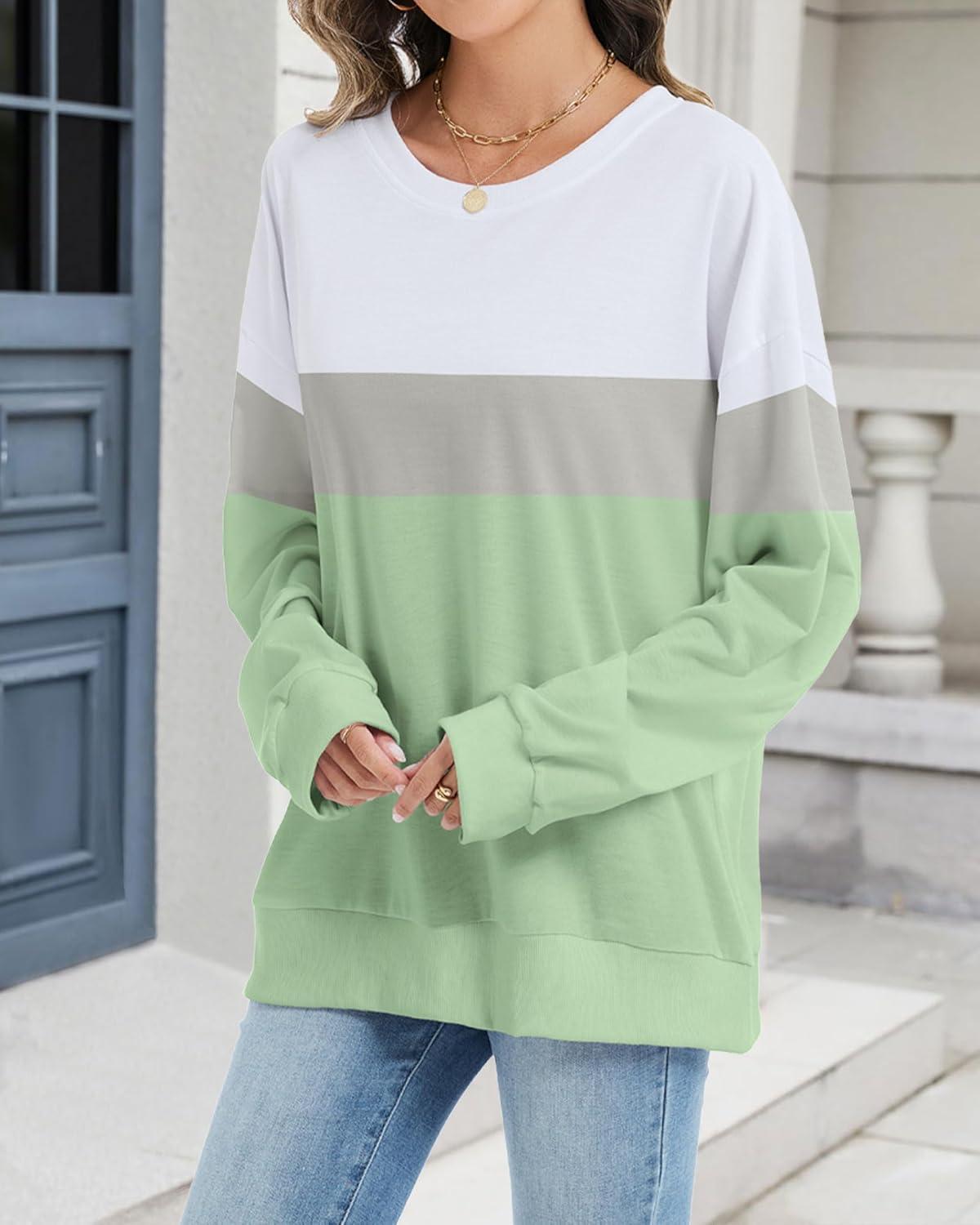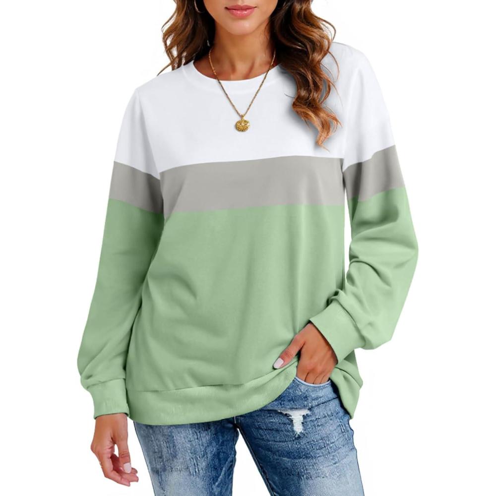CHICGAL Sweatshirt for Women Long Sleeve Shirts Crewneck Color Block Loose Fit Pullover Fall Tops(Green Gray)