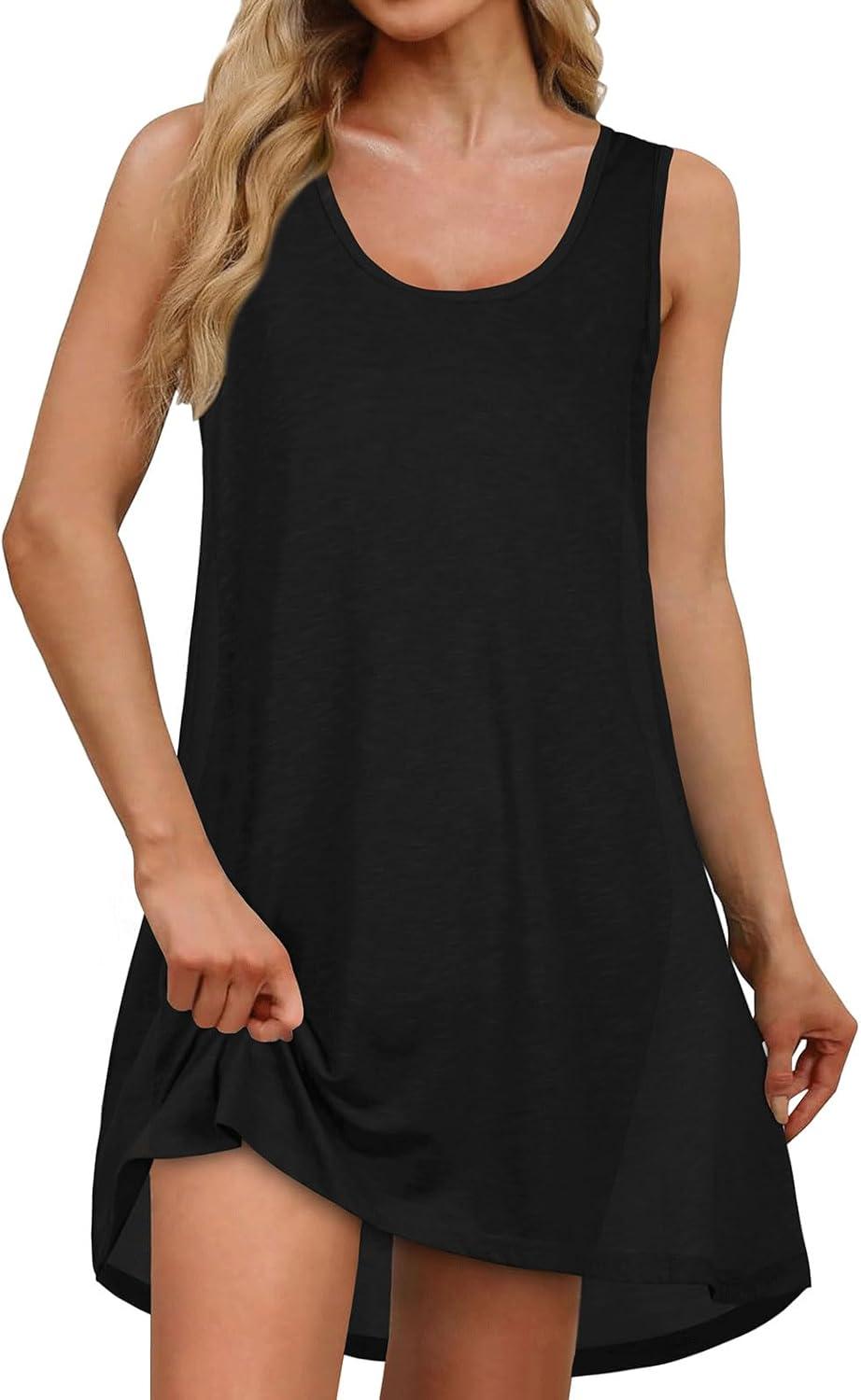 CHICGAL Swimsuit Coverup for Women Summer Sleeveless Beach Dress Tank Bikini Bathing Suit Cover Up(A Black)