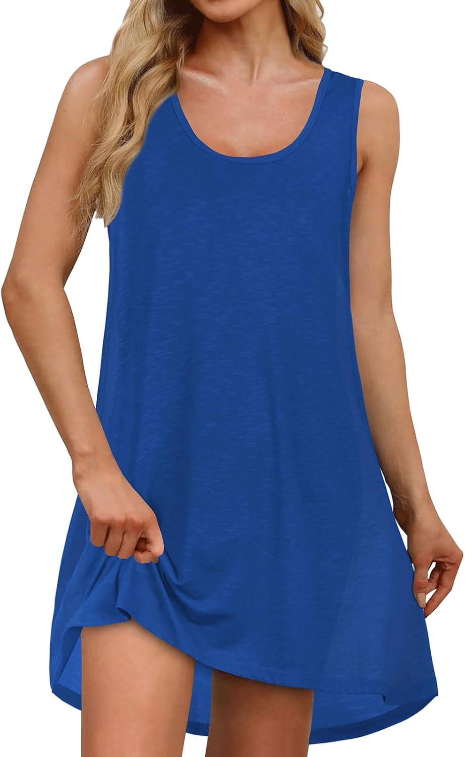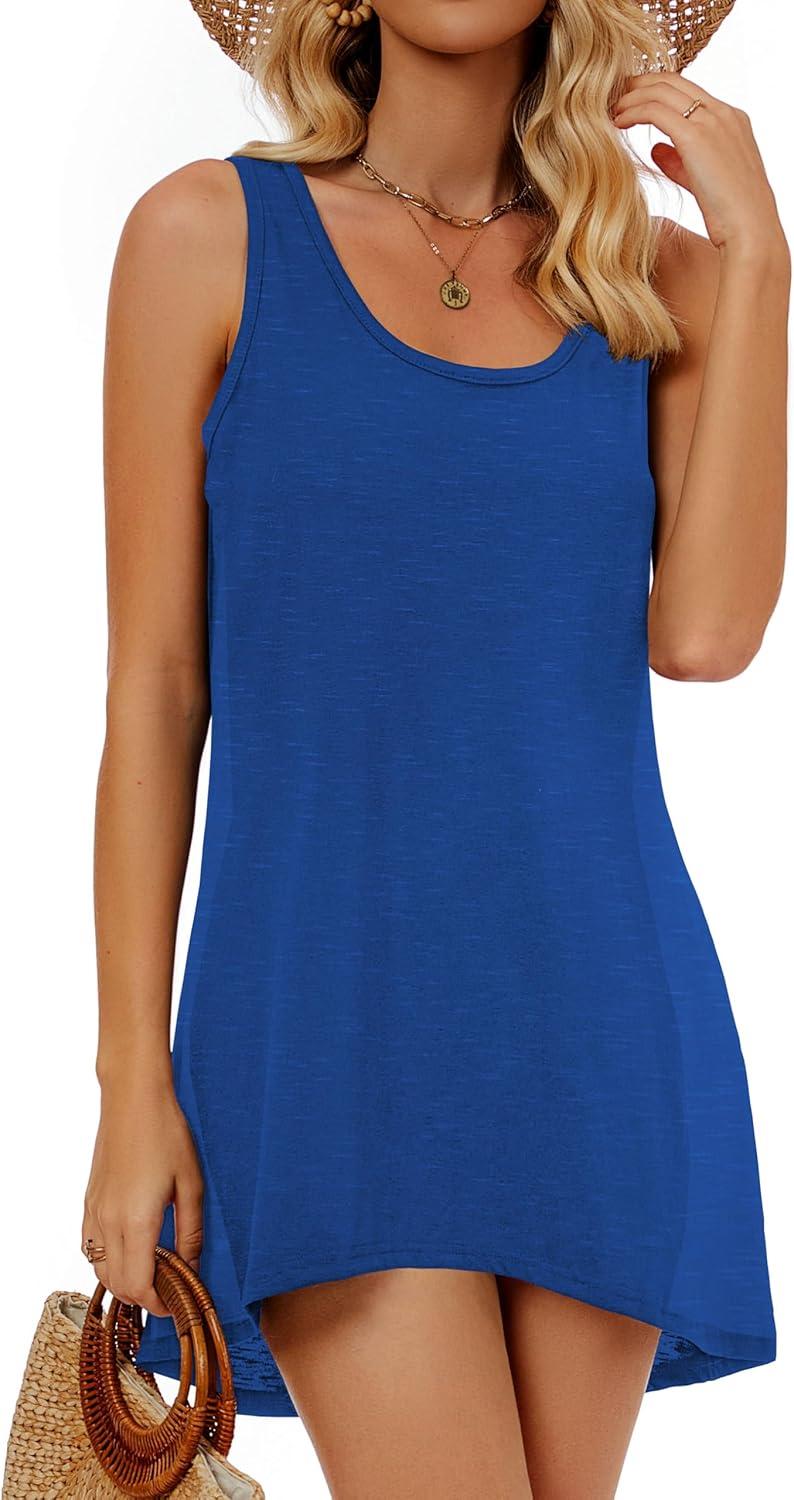 CHICGAL Swimsuit Coverup for Women Summer Sleeveless Beach Dress Tank Bikini Bathing Suit Cover Up(A Dark Blue)