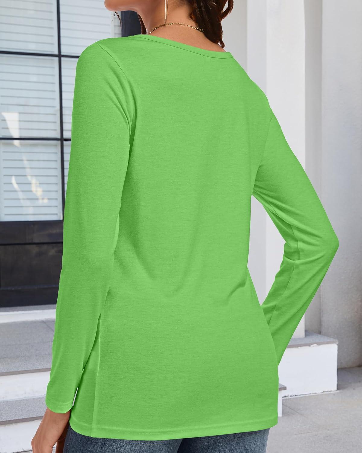 CHICGAL Women Long Sleeve Shirts Casual Fall Tees Crew Neck Basic Tunic Tops(Bright Green)