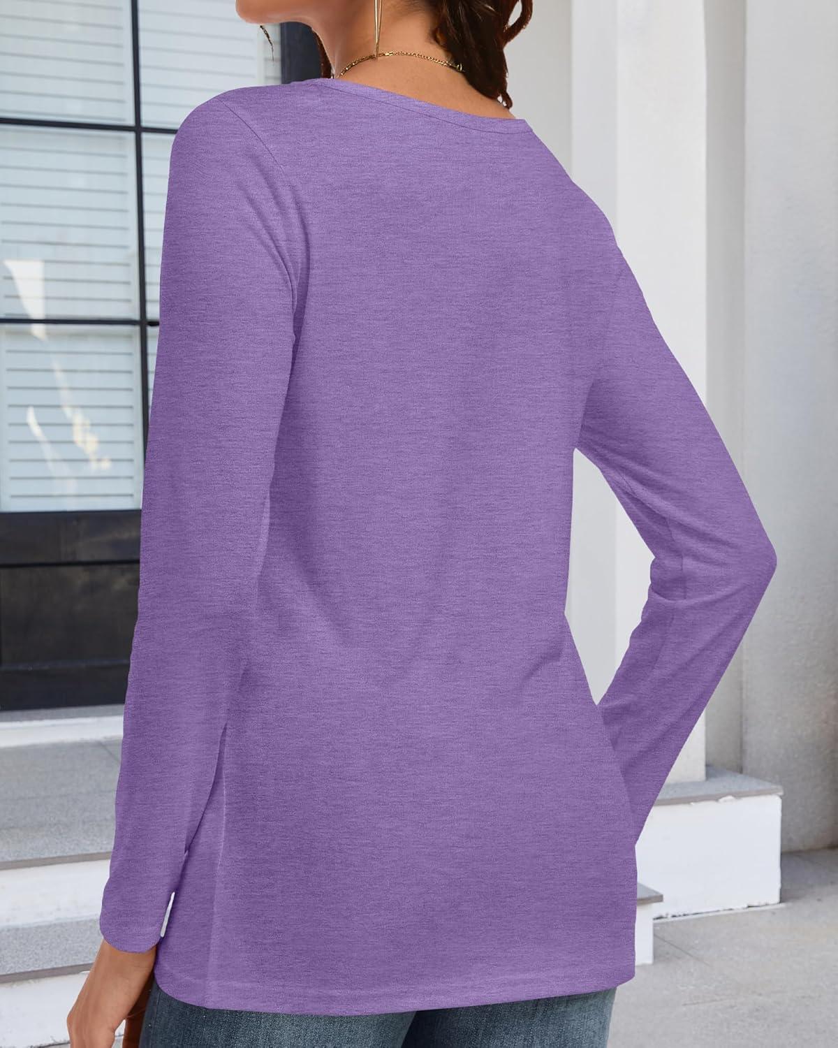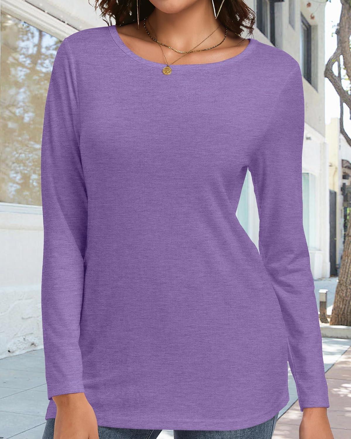 CHICGAL Women Long Sleeve Shirts Casual Fall Tees Crew Neck Basic Tunic Tops(Purple)