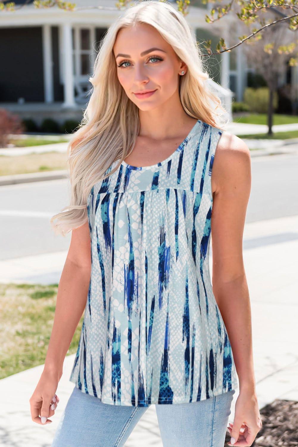 CHICGAL Womens Summer Tank Tops Sleeveless T Shirt Casual Loose Fit Tunic Blouses(Blue Red Print)
