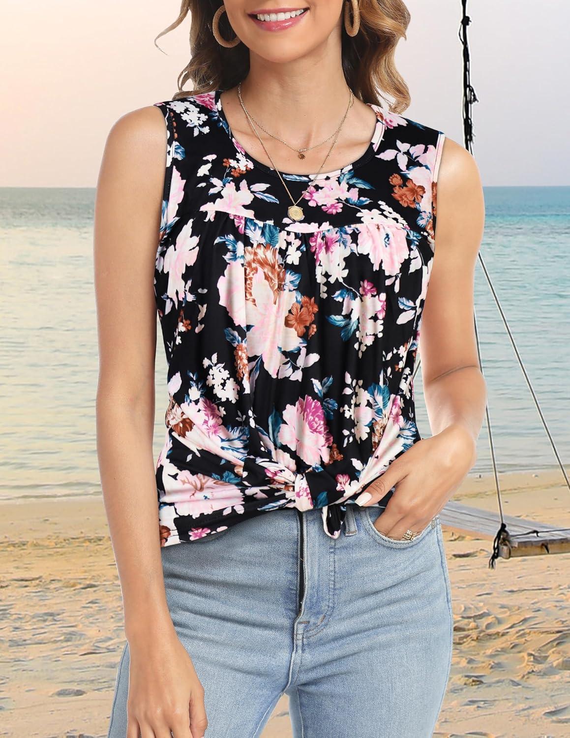 CHICGAL Womens Summer Tank Tops Sleeveless T Shirt Casual Loose Fit Tunic Blouses(Flourishing Blossom)