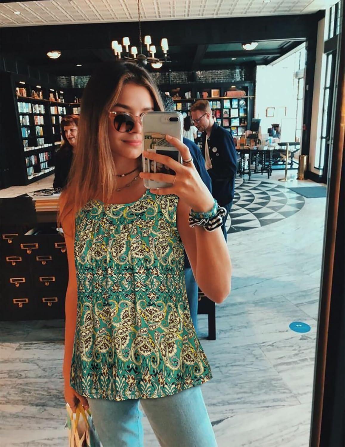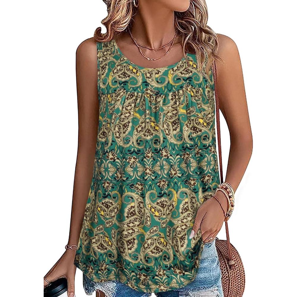 CHICGAL Womens Summer Tank Tops Sleeveless T Shirt Casual Loose Fit Tunic Blouses(Green Paisley)