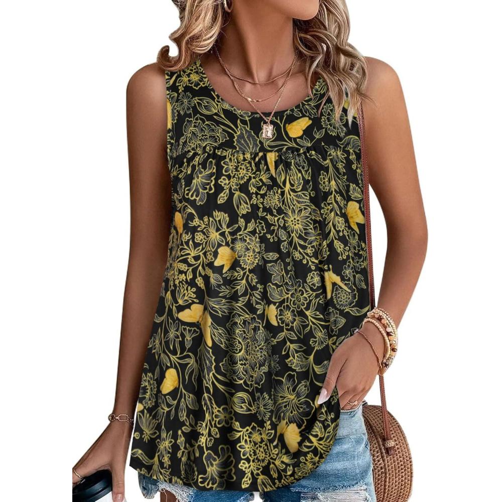 CHICGAL Womens Summer Tank Tops Sleeveless T Shirt Casual Loose Fit Tunic Blouses(Leaves With Butterflies)