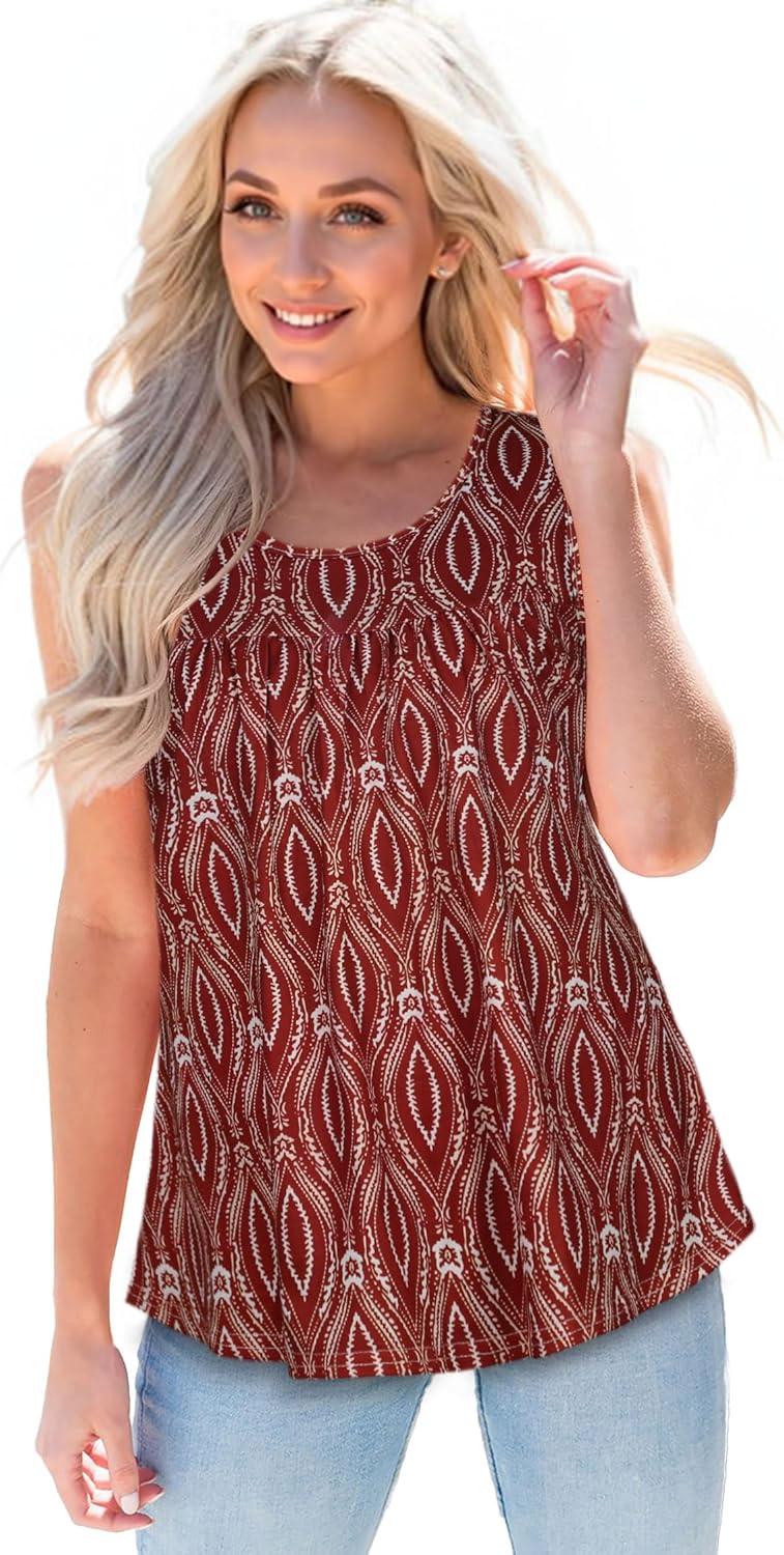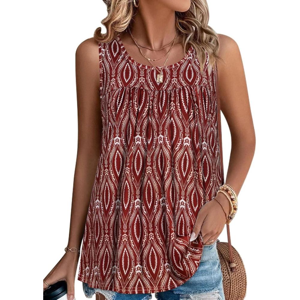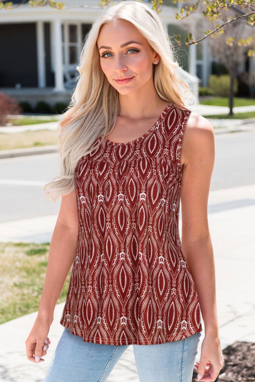 imageCHICGAL Womens Summer Tank Tops Sleeveless T Shirt Casual Loose Fit Tunic BlousesRed Semicircle Pattern