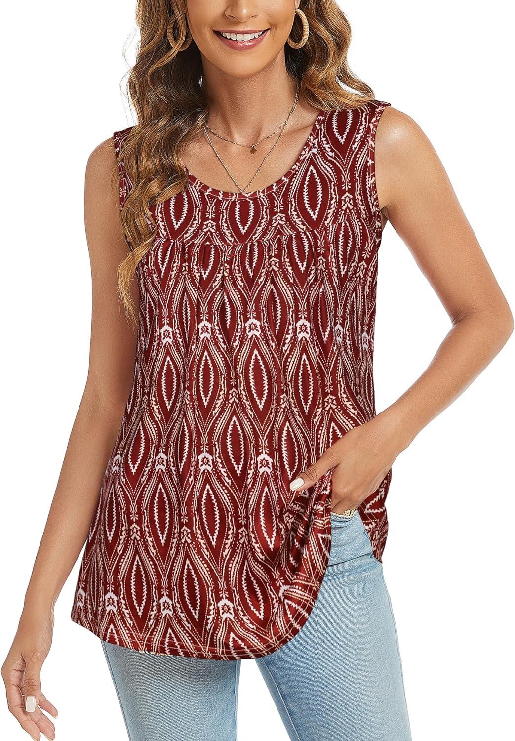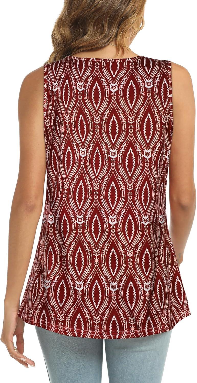 CHICGAL Womens Summer Tank Tops Sleeveless T Shirt Casual Loose Fit Tunic Blouses(Red Semicircle Pattern)