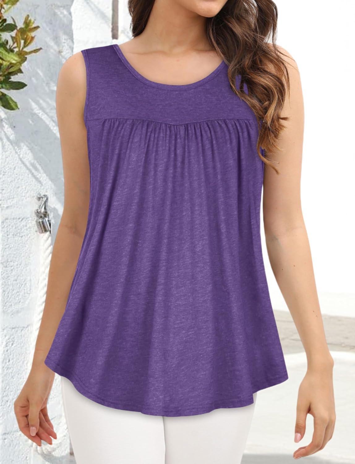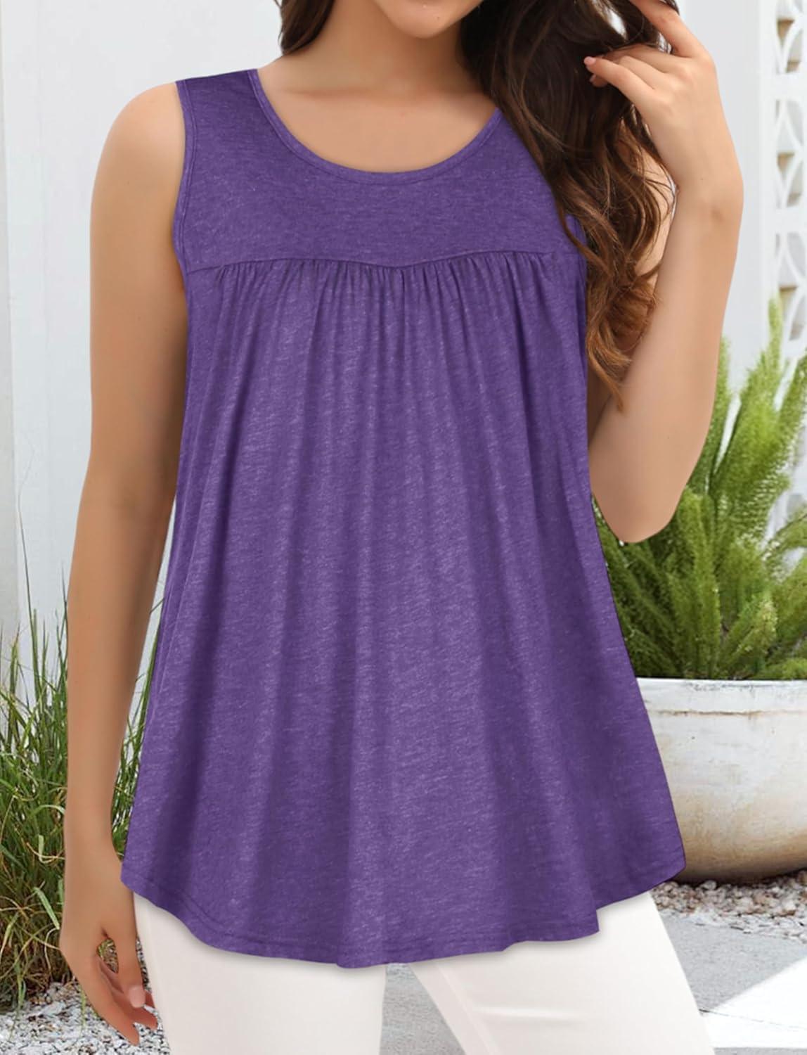 CHICGAL Womens Summer Tank Tops Sleeveless T Shirt Casual Loose Fit Tunic Blouses(Solid Purple)