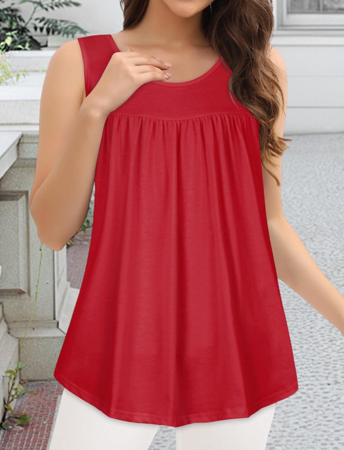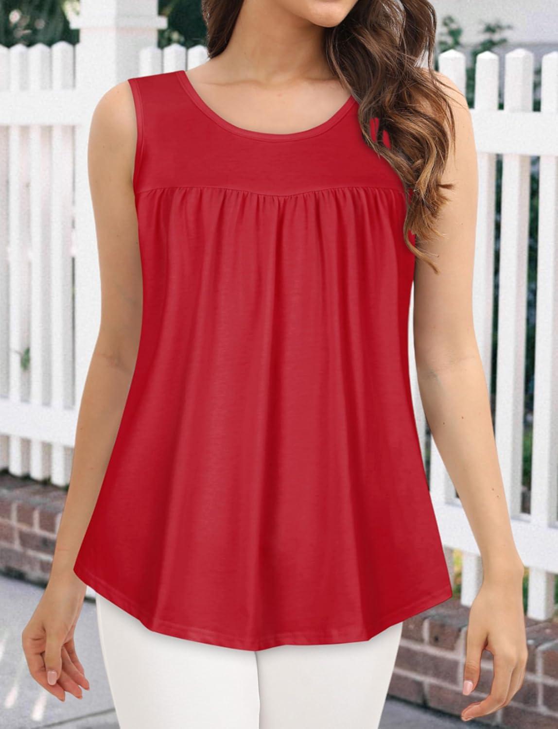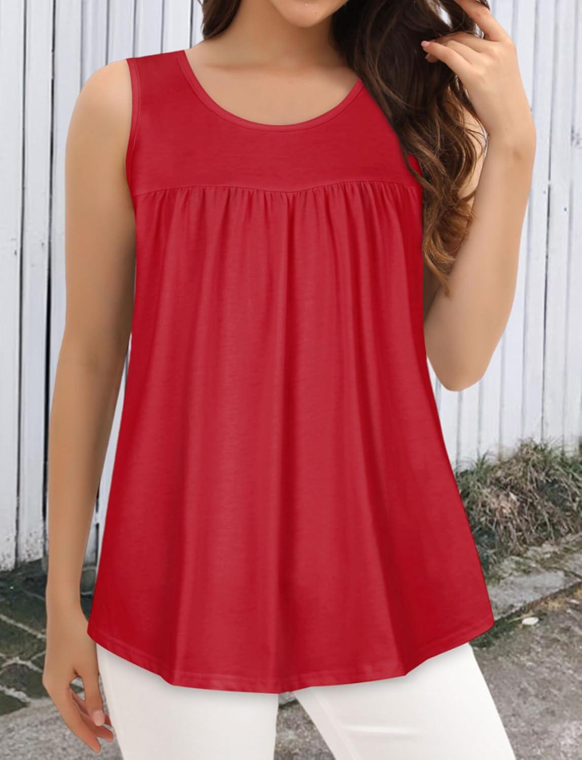 CHICGAL Womens Summer Tank Tops Sleeveless T Shirt Casual Loose Fit Tunic Blouses(Solid Red)