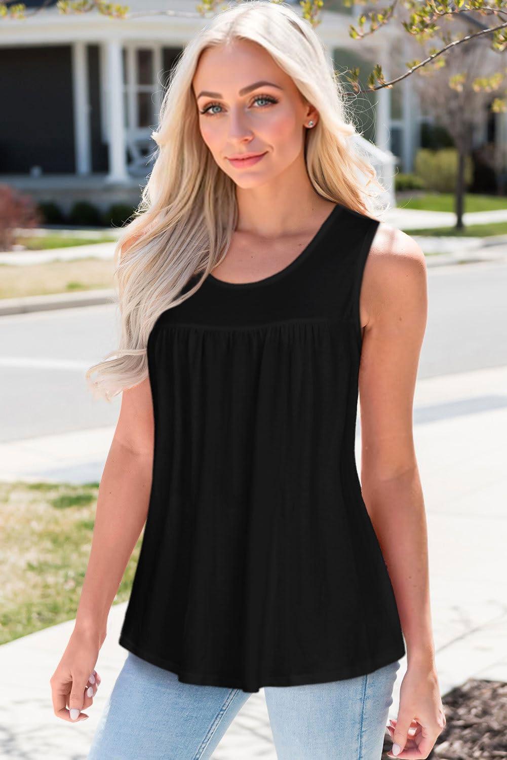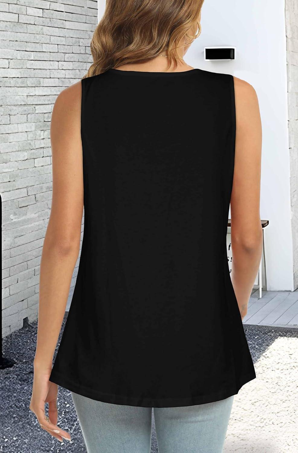 CHICGAL Womens Summer Tank Tops Sleeveless T Shirt Casual Loose Fit Tunic Blouses(W-black)