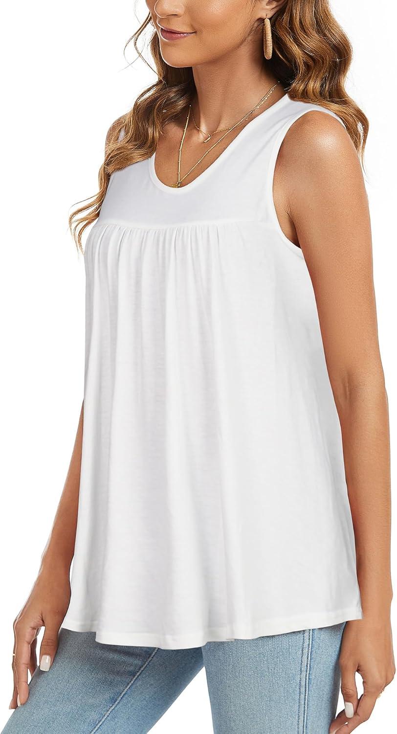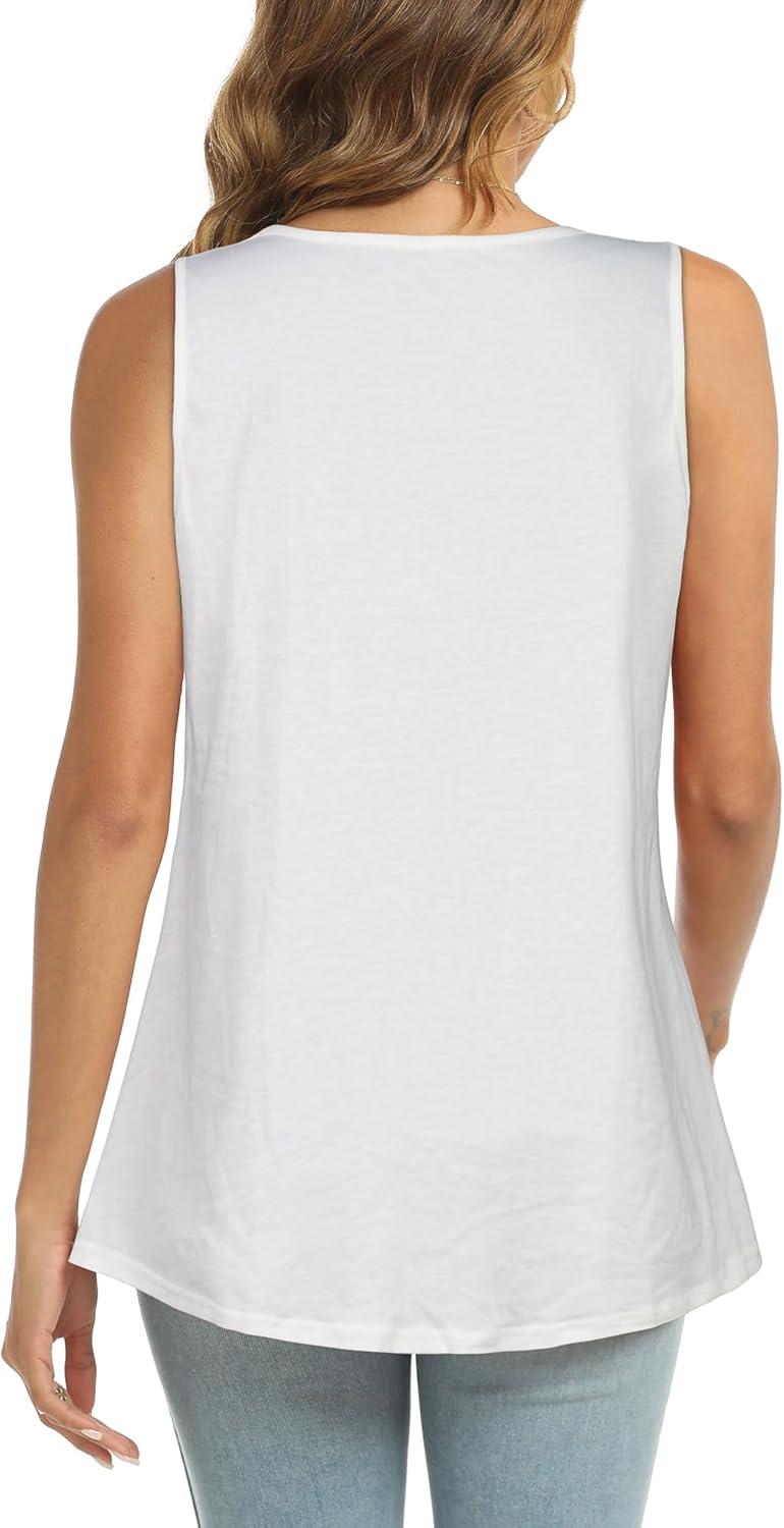 CHICGAL Womens Summer Tank Tops Sleeveless T Shirt Casual Loose Fit Tunic Blouses(W-white)