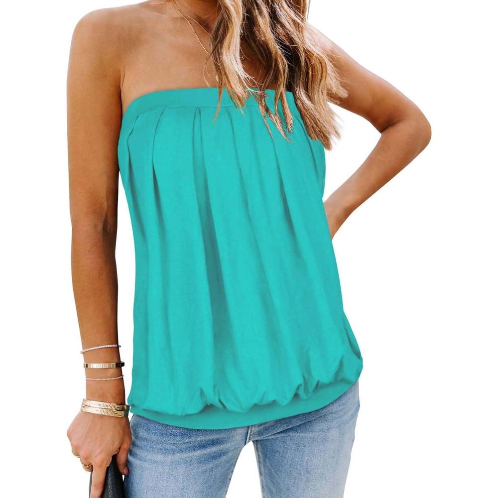Save up to 40% on CHICGAL Women’s Tube Tops Summer Casual Bandeau Tank Casual Strapless Blouse Off The Shoulder Tunic Shirts(Lake Blue) styles during our end-of-season sale.