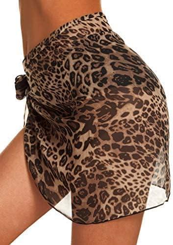 Swimsuit Coverups for Women Sarong Beach Bikini Wrap Sheer Short Skirt Chiffon Scarf for Swimwear(Cheetah)