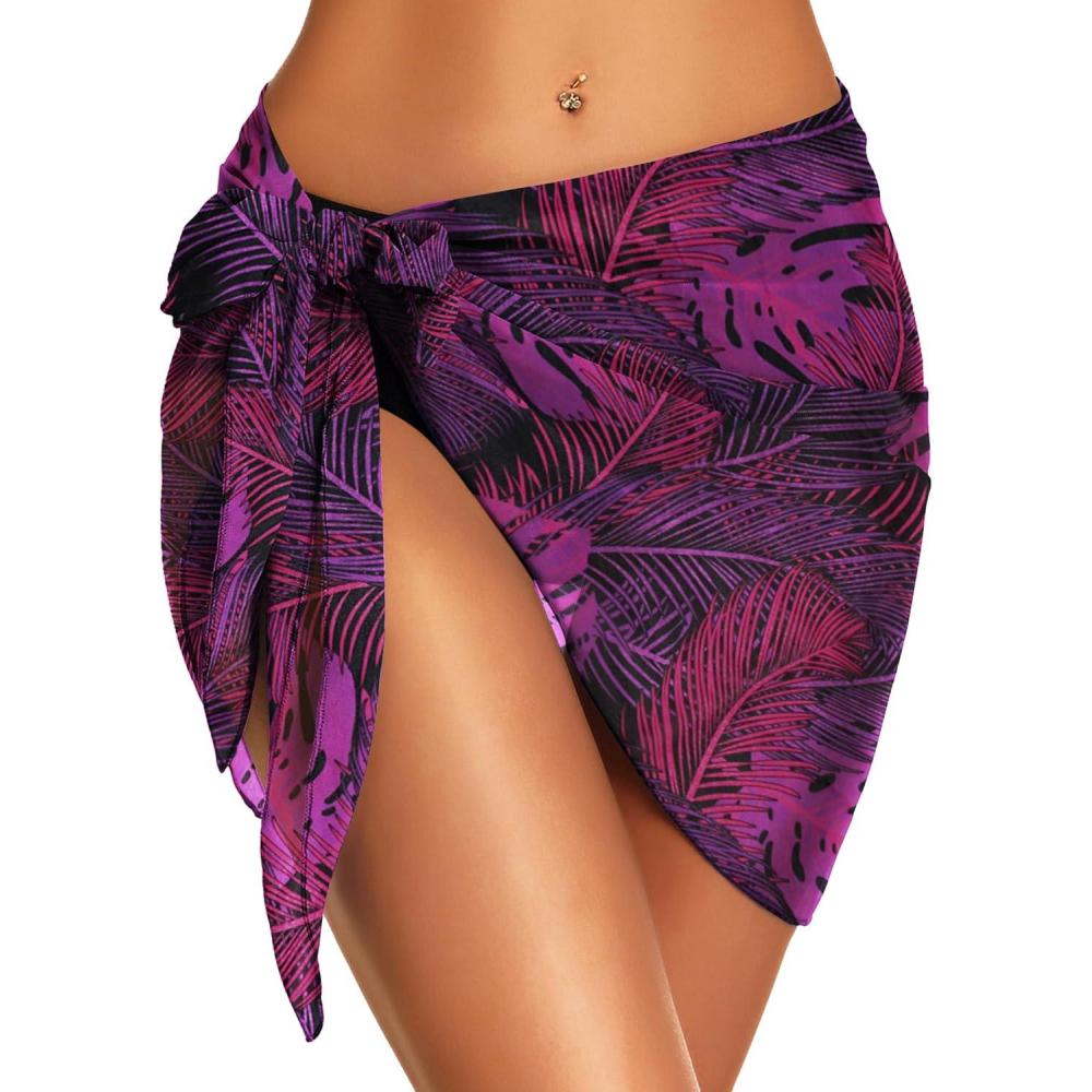 Swimsuit Coverups for Women Sarong Beach Bikini Wrap Sheer Short Skirt Chiffon Scarf for Swimwear(Purple Leaf)