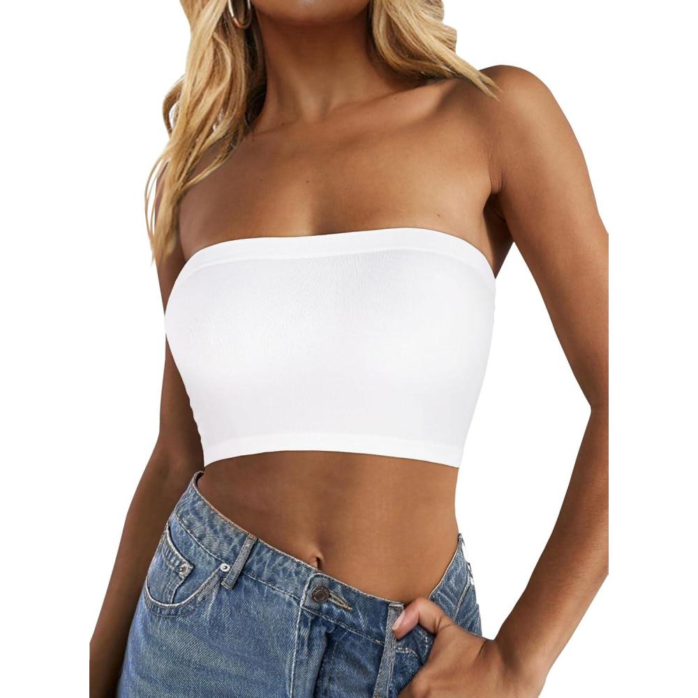 Tube Tops for Women Summer Crop Top Basic Casual Bandeau Going Out Strapless Short Shirt(White)