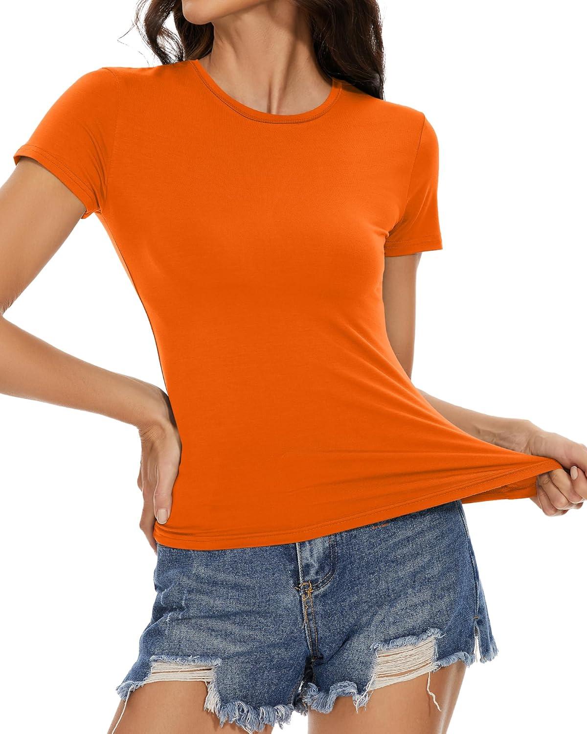 Womens Basic Tees Summer Short Sleeve Shirts Slim Fit Tight T Shirt Going Out Tops(01#orange)