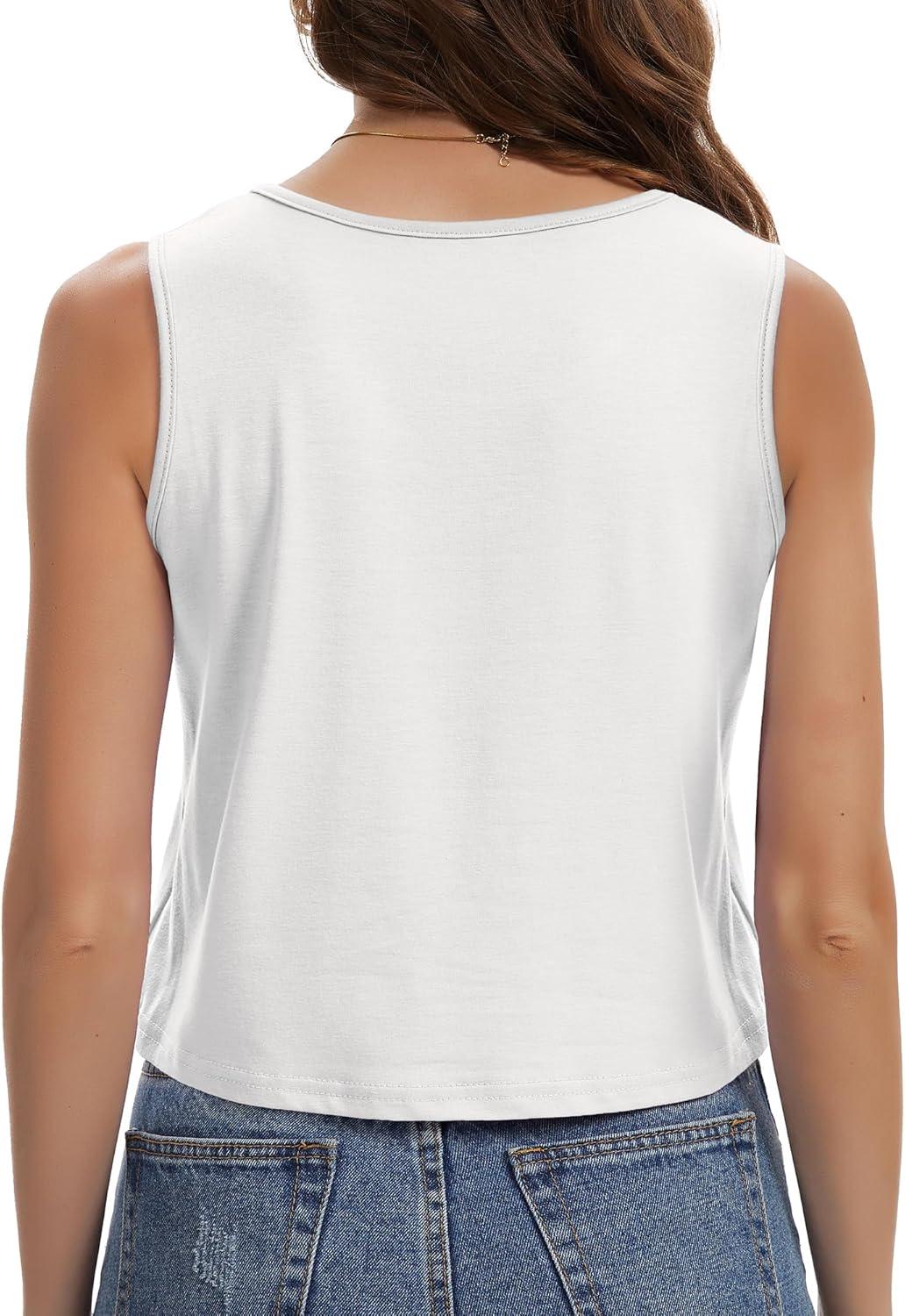 imageWomens Crop Tops Summer Casual Sleeveless Tank Loose Fit Basic ShirtsA White