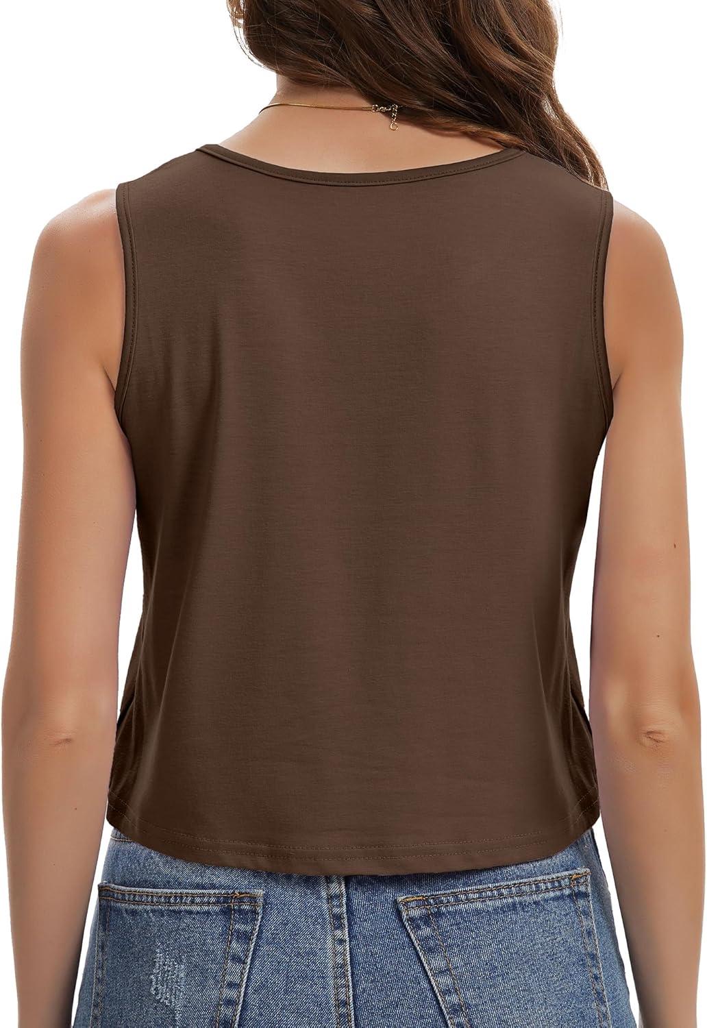 Womens Crop Tops Summer Casual Sleeveless Tank Loose Fit Basic Shirts(Brown)