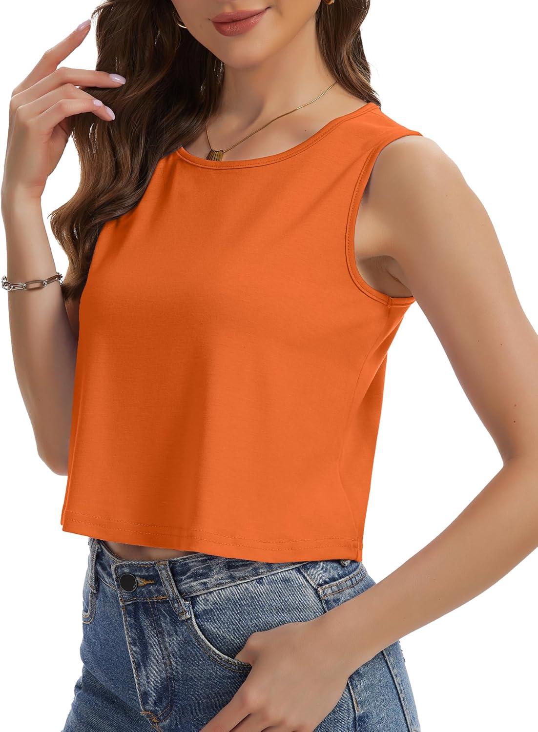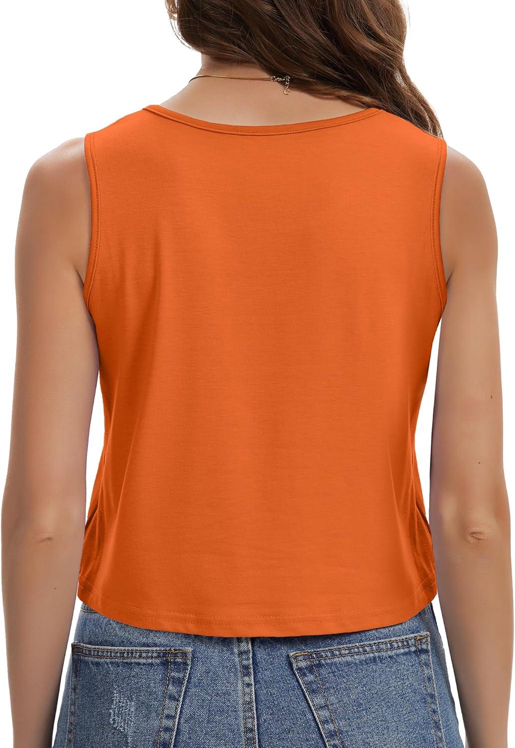 Womens Crop Tops Summer Casual Sleeveless Tank Loose Fit Basic Shirts(Orange)