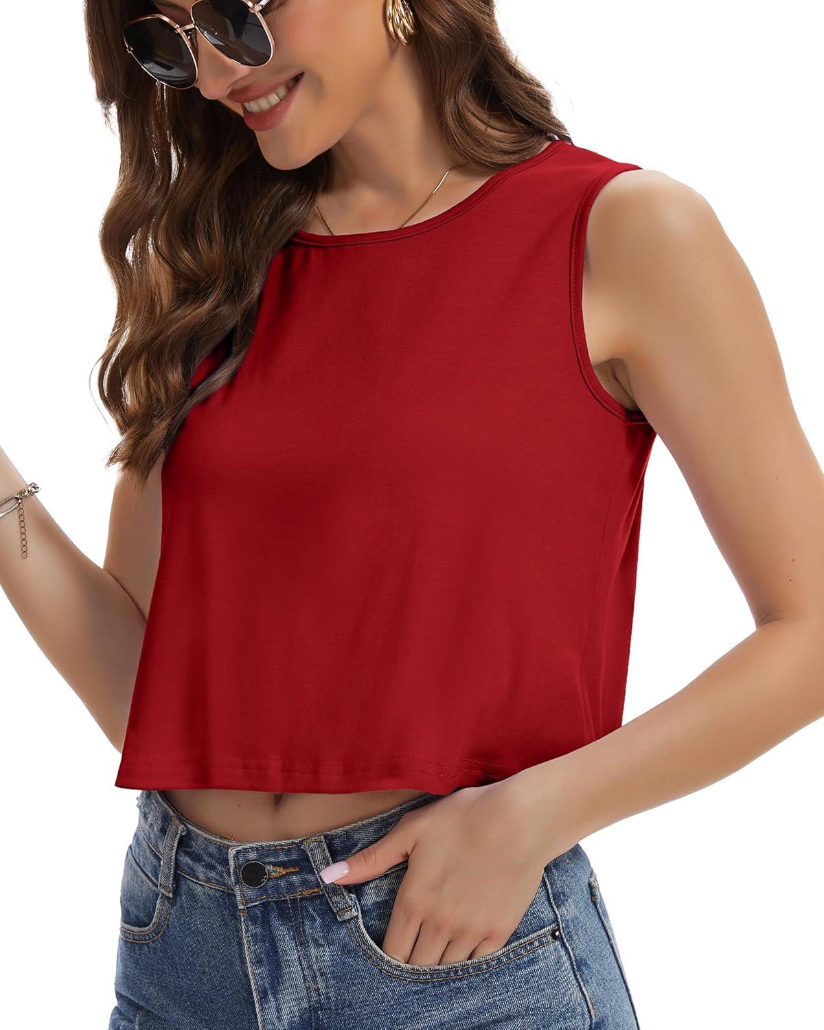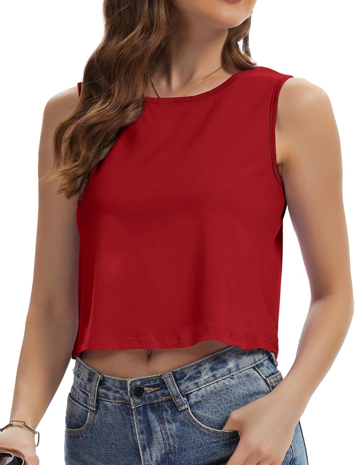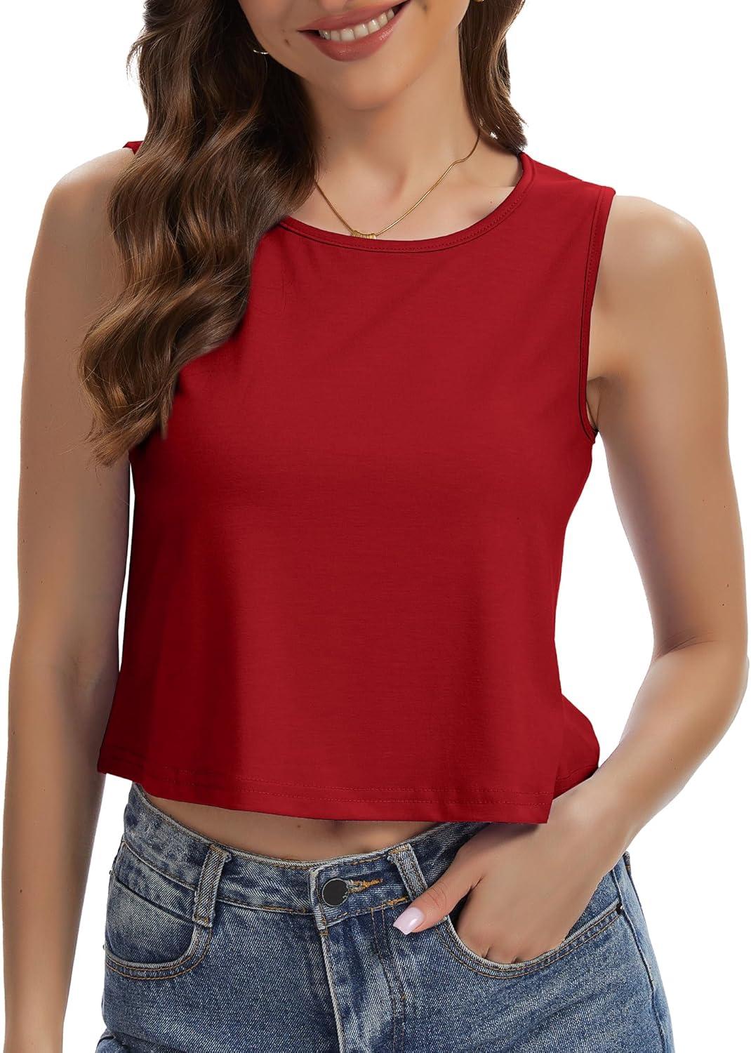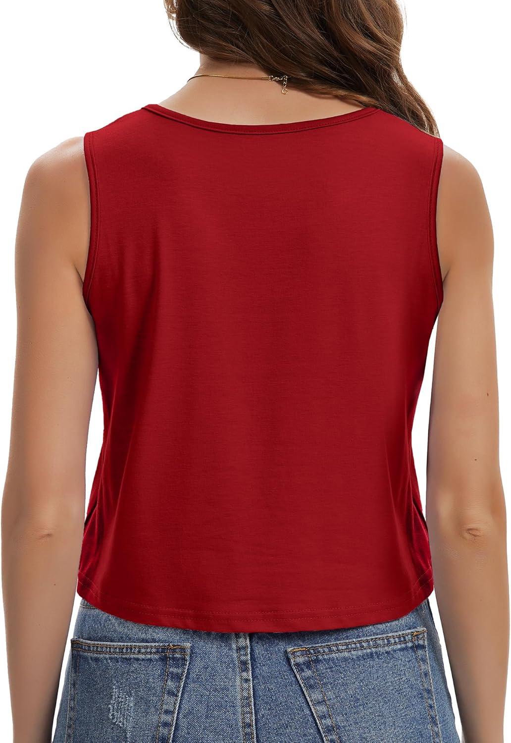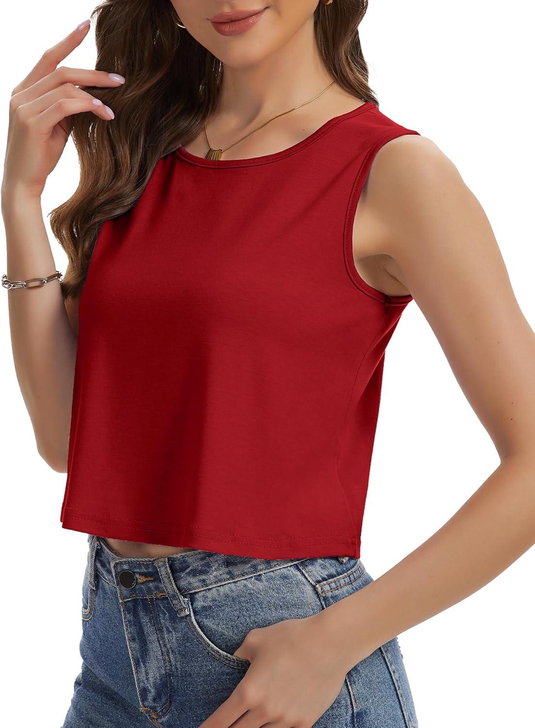 Womens Crop Tops Summer Casual Sleeveless Tank Loose Fit Basic Shirts(Red)