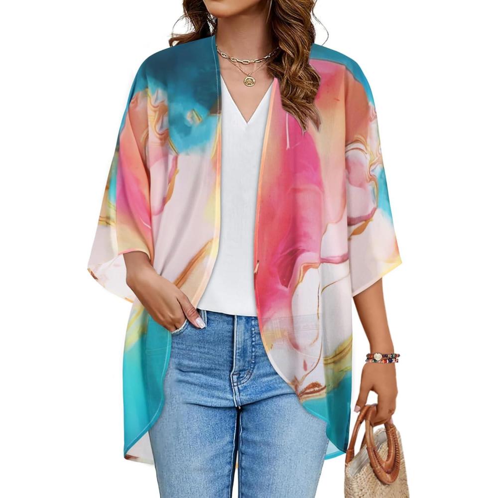 Be the first to review “Women’s Floral Print Puff Sleeve Kimono Cardigan Loose Cover Up Casual Blouse Tops(Colorful Gilt)”