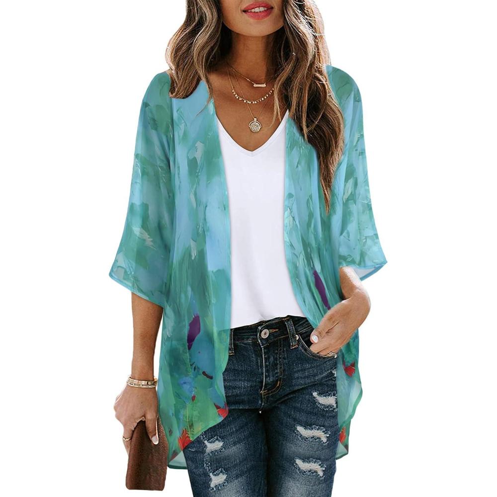 Don’t wait, get up to 50% off on Women’s Floral Print Puff Sleeve Kimono Cardigan Loose Cover Up Casual Blouse Tops(Teal Blue Print) during our end-of-season sale event.