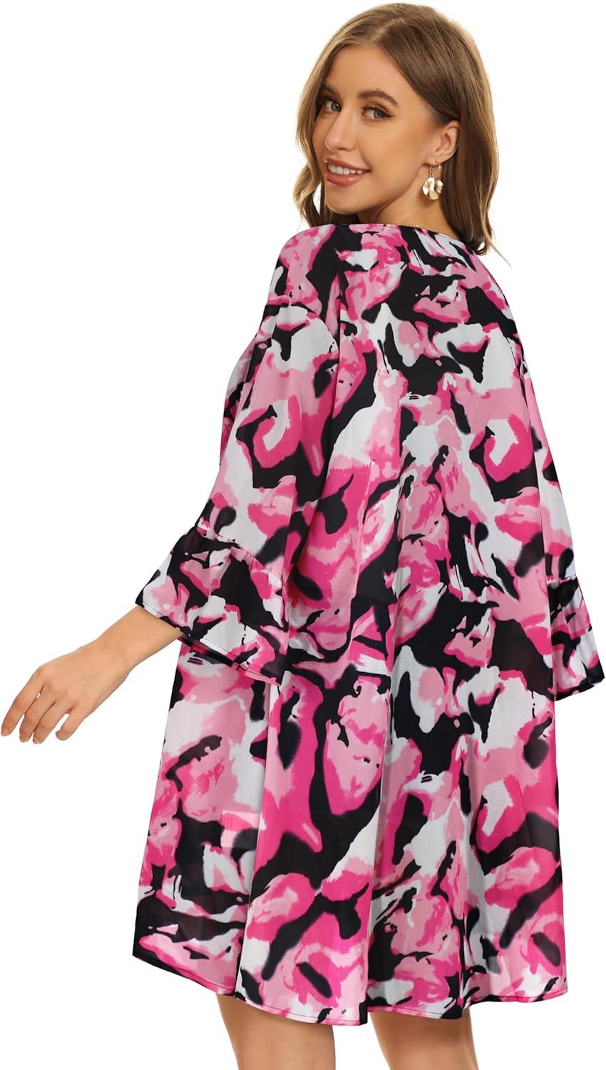 Women’s Kimono Cardigans Floral Chiffon Loose Open Front Casual Summer Tops(Tie Dyed Pink White)