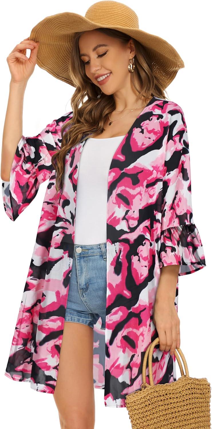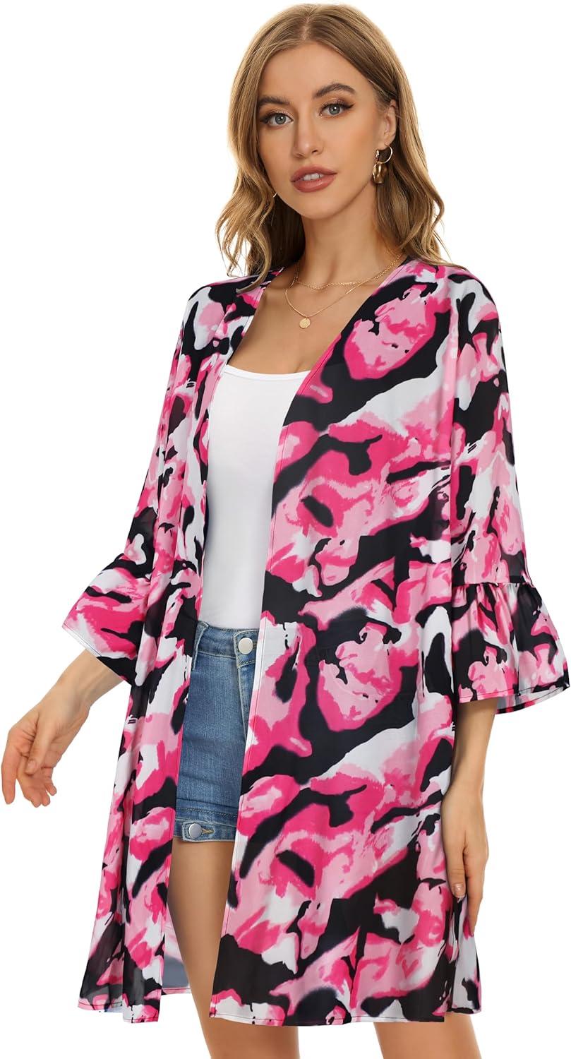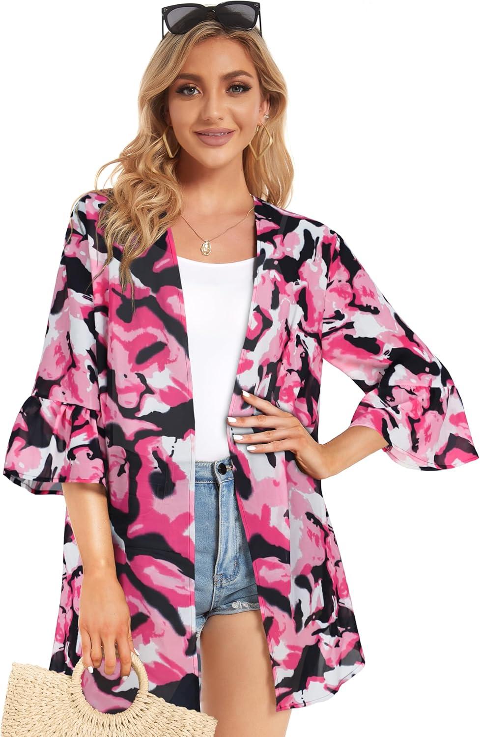 Save big on Women’s Kimono Cardigans Floral Chiffon Loose Open Front Casual Summer Tops(Tie Dyed Pink White) and accessories during our BOGO sale. Buy one, get one 50% off!