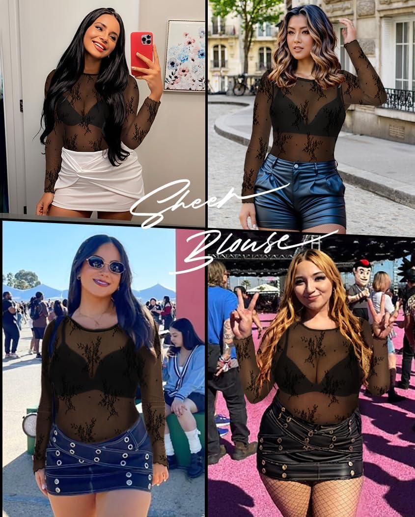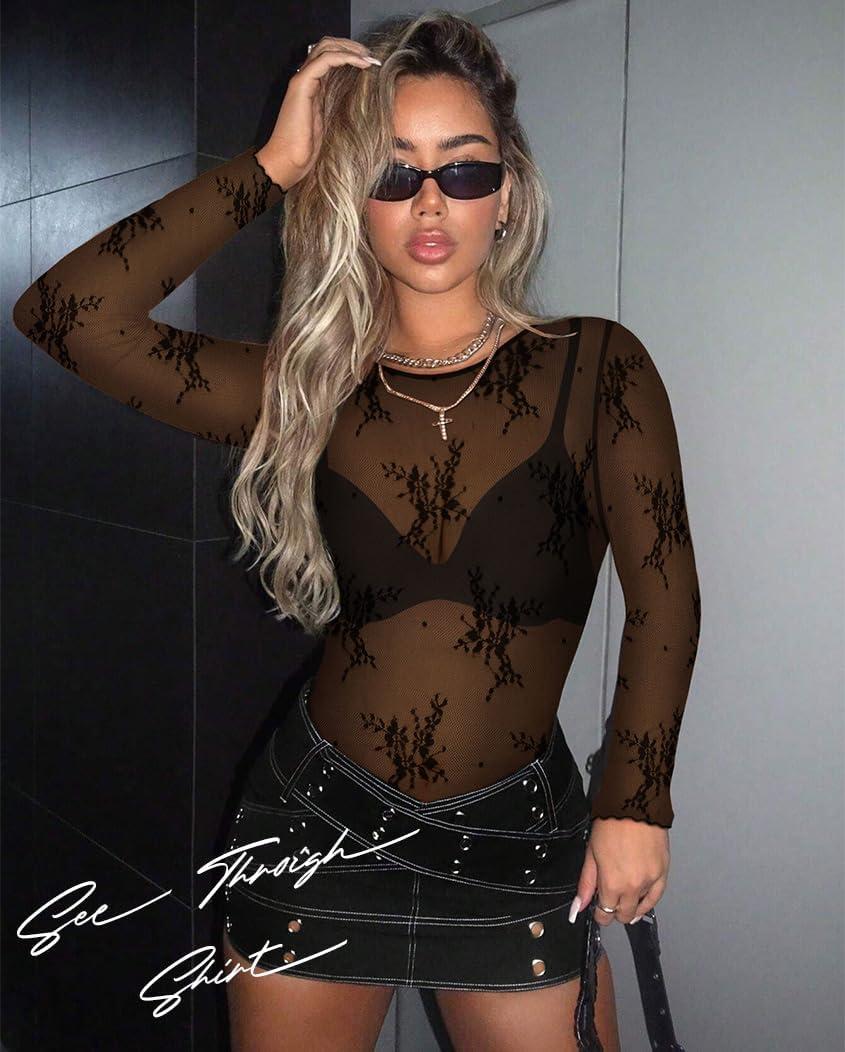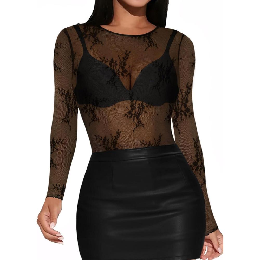 Discover the latest Women’s Mesh Tops Sheer Long Sleeve Tee Shirts Bodycon See Through Blouse Clubwear(Black Floral) from and take advantage of our limited-time introductory offer.