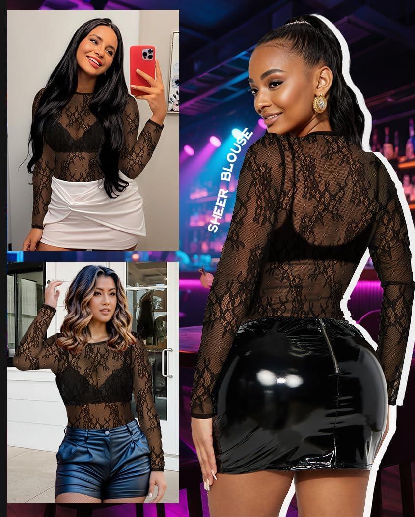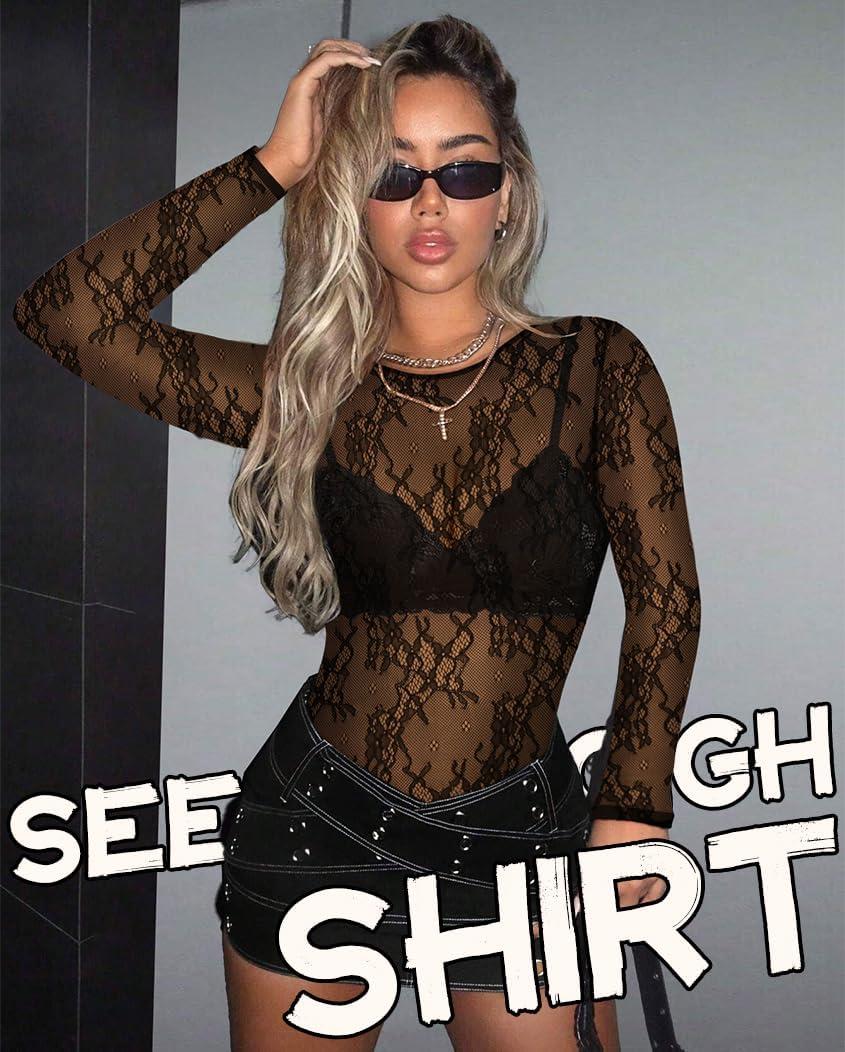 Get the Women’s Mesh Tops Sheer Long Sleeve Tee Shirts Bodycon See Through Blouse Clubwear(Black Petals) you want at a discounted price during our markdown sale event.