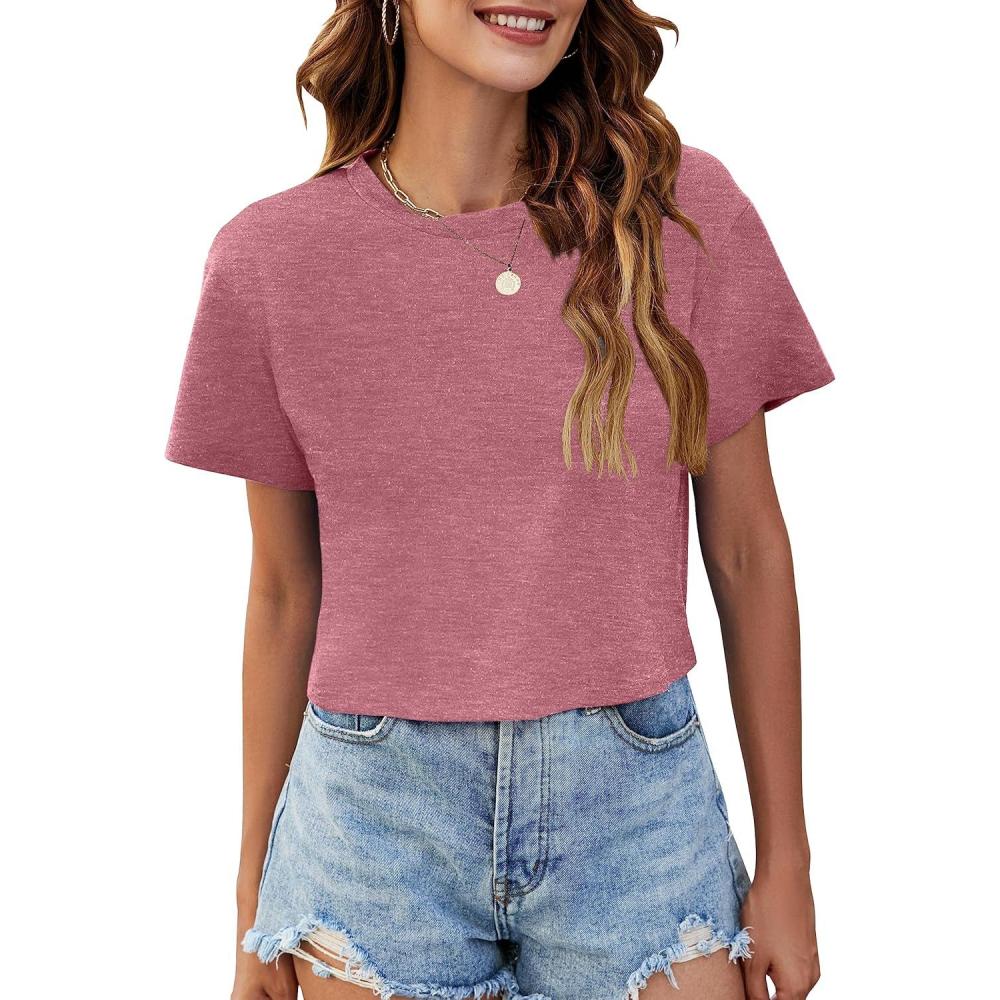Get your hands on our exclusive Womens Summer Crop Tops Short Sleeve Round Neck T-Shirts Loose Fit Casual Blouse(B Brick Red) collection, now at a discounted price.