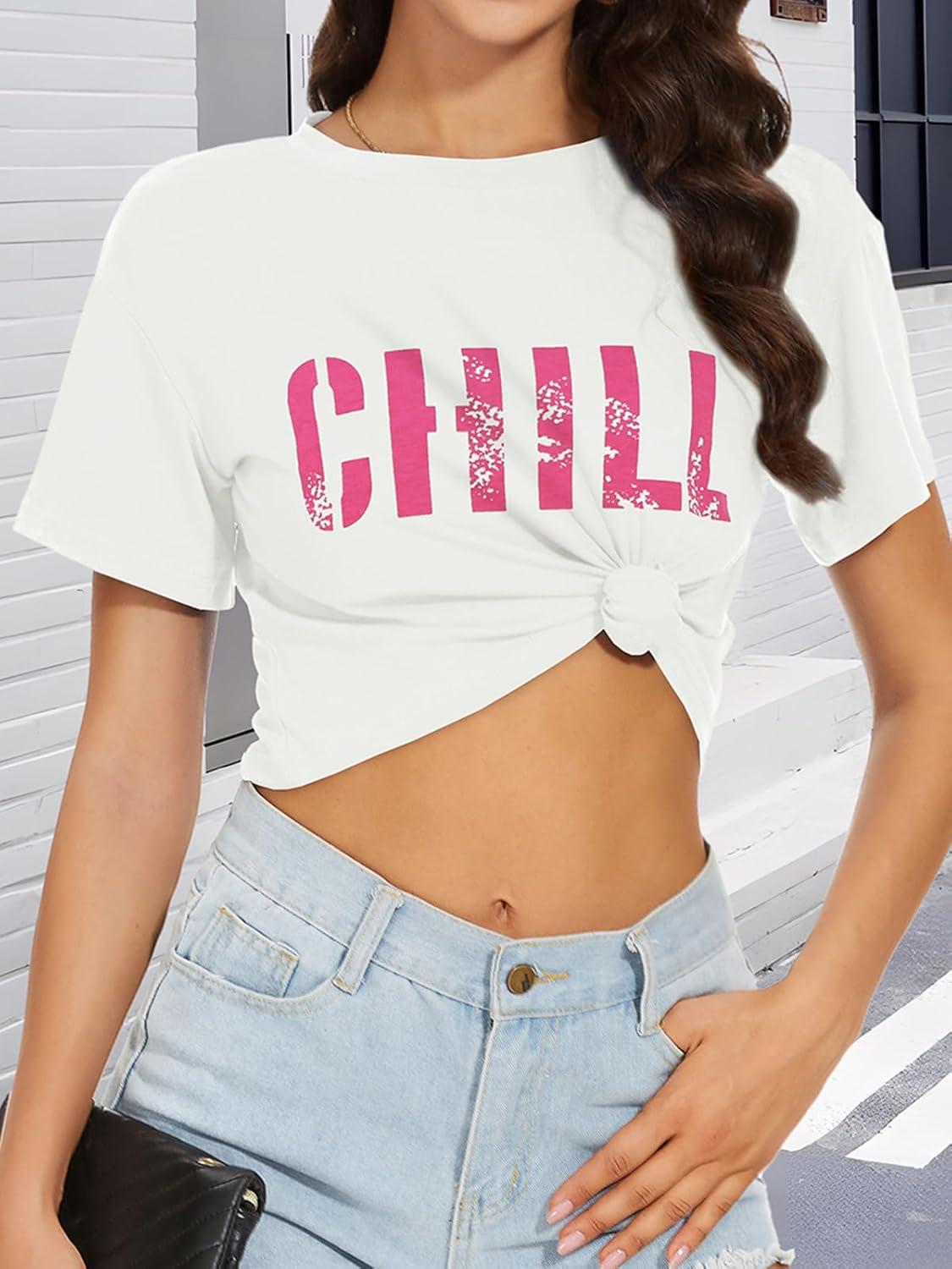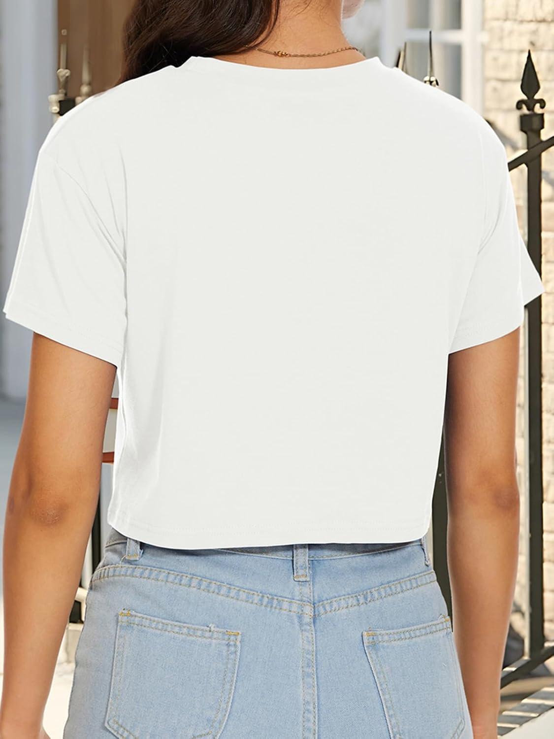 imageWomens Summer Crop Tops Short Sleeve Round Neck TShirts Loose Fit Casual BlouseE White Pink Letter